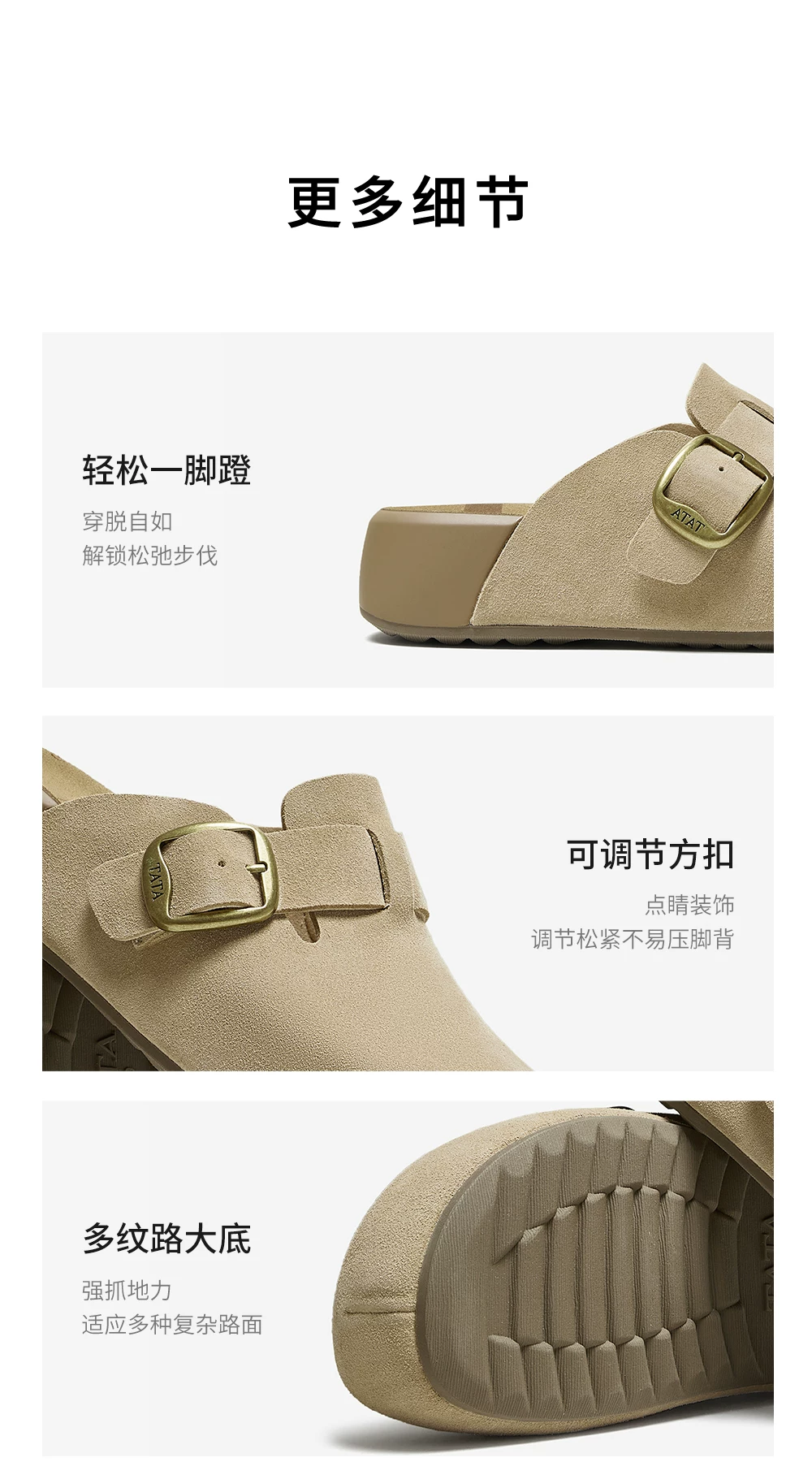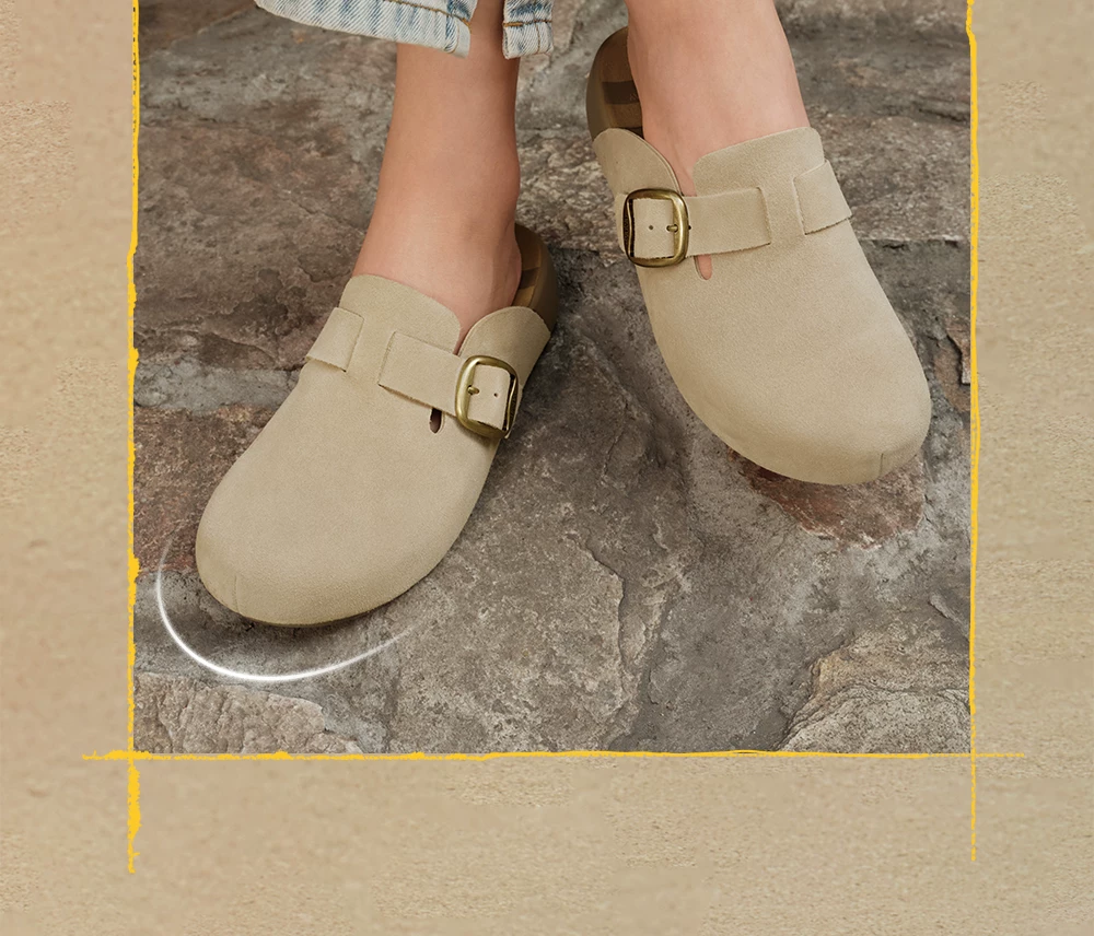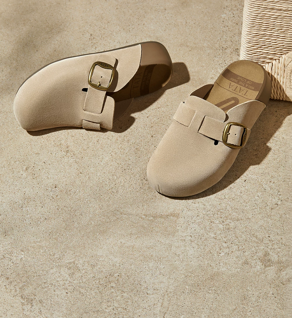 - Giày nữ TATA 2025 kiểu Birkenstock lót lông cừu, đi ngoài trời, đế dày, giày lông mềm, dép 4UL01CH5
