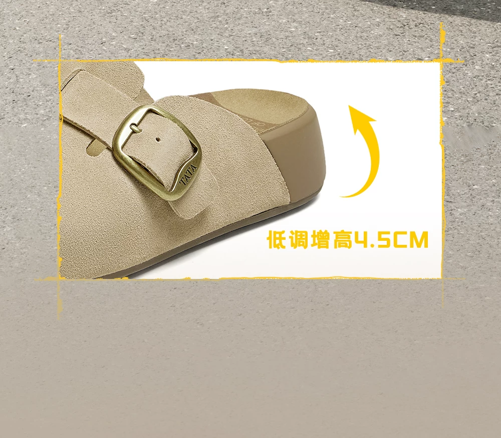 Giày nữ TATA 2025 kiểu Birkenstock lót lông cừu, đi ngoài trời, đế dày, giày lông mềm, dép 4UL01CH5