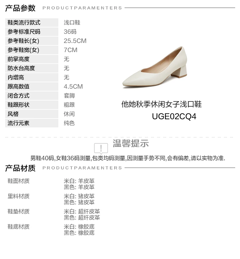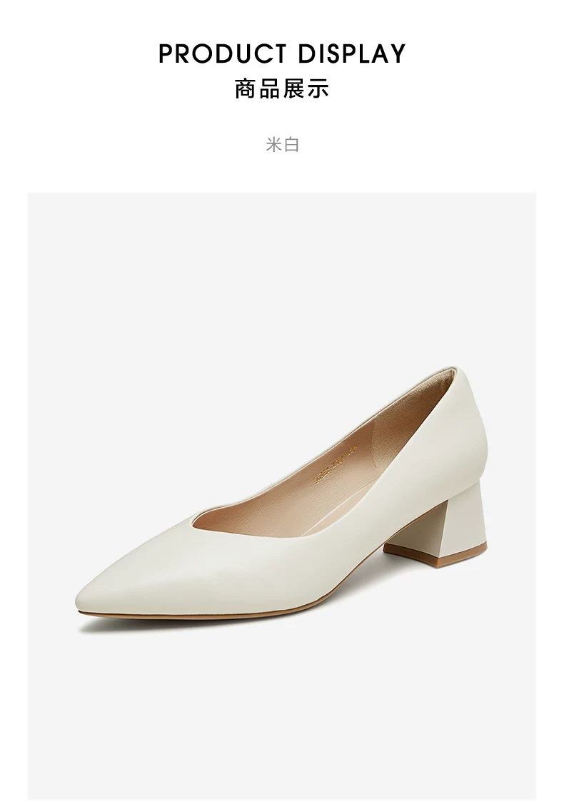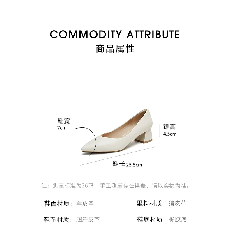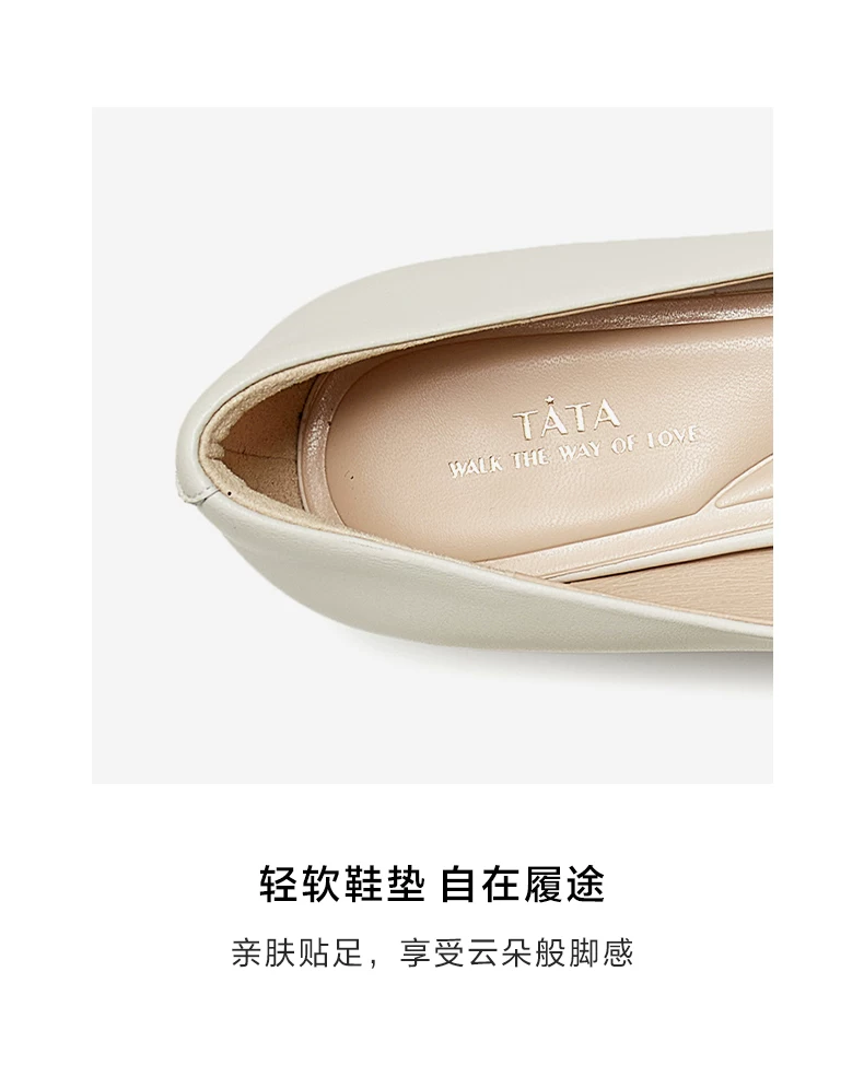 - Giày nữ TATA 2025 kiểu Pháp mới, mũi nhọn, gót cao, gót thô, màu trắng, giày đơn, đi làm, chất liệu da cừu