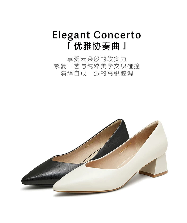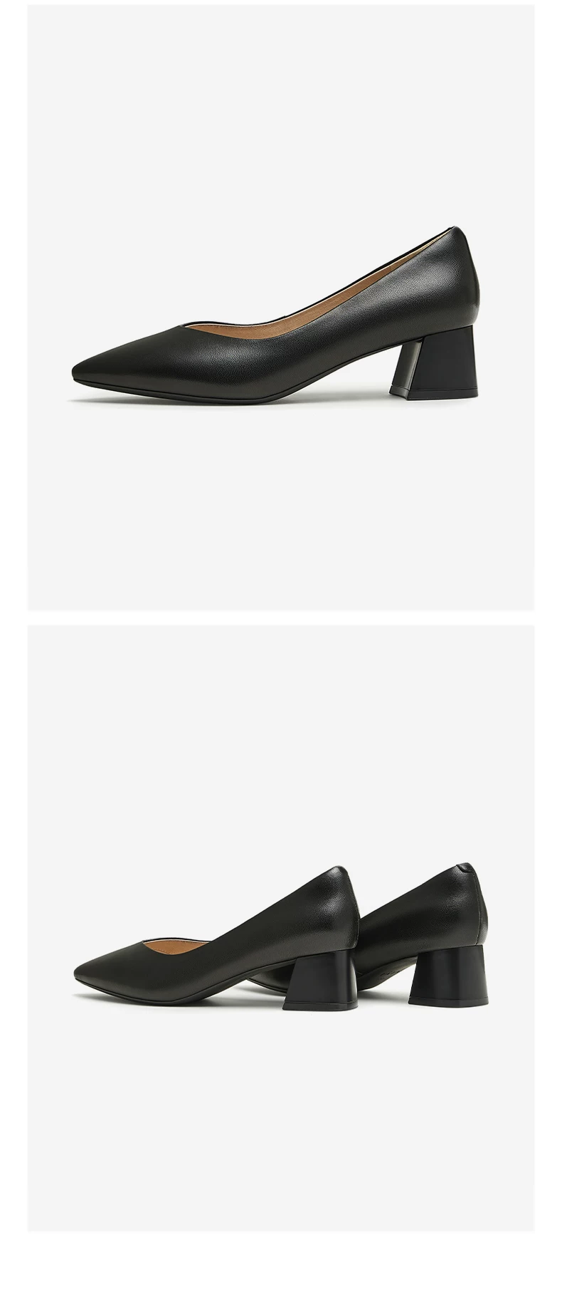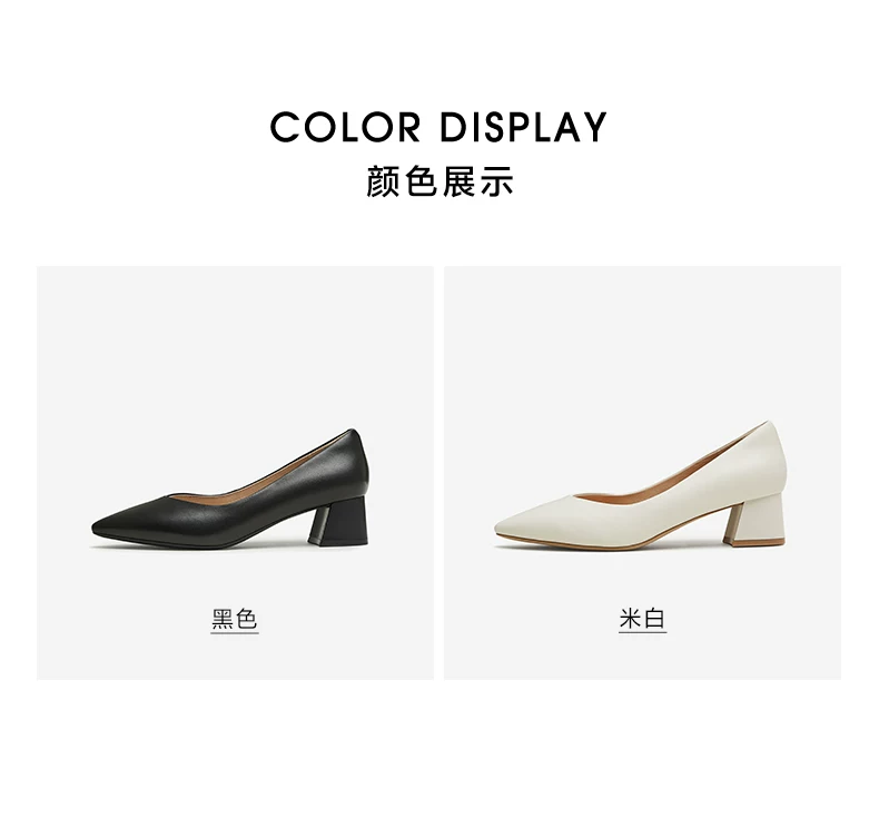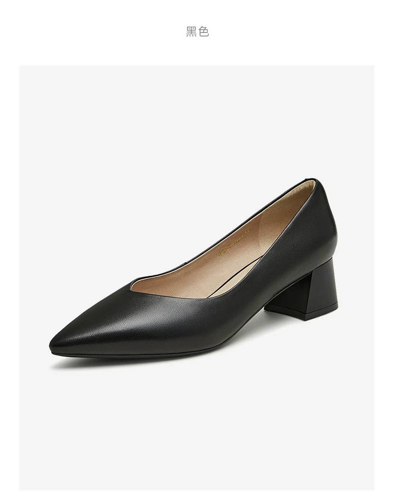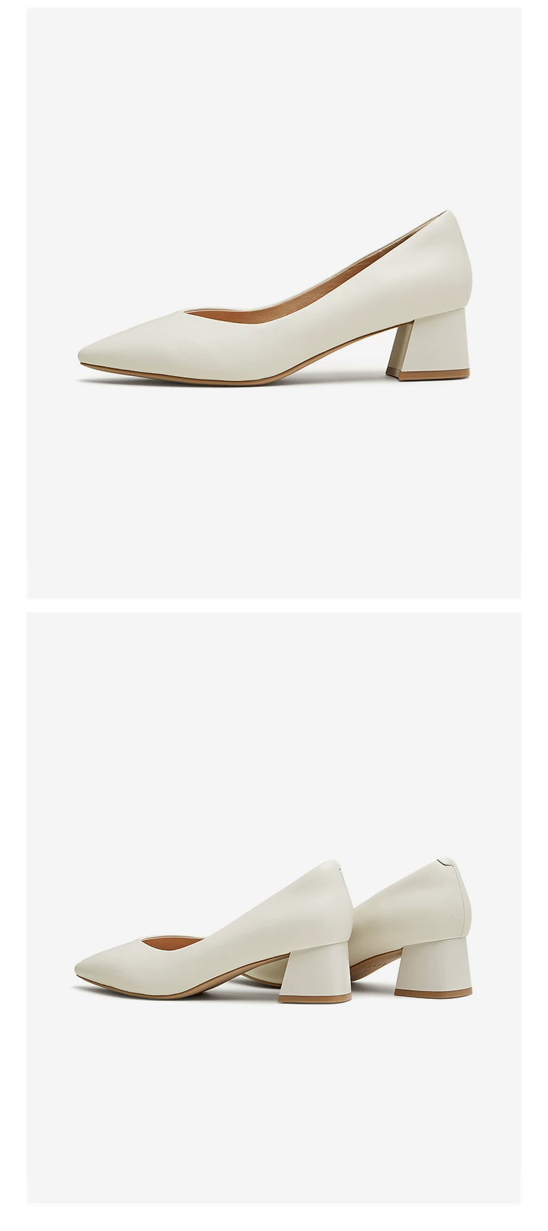 Giày nữ TATA 2025 kiểu Pháp mới, mũi nhọn, gót cao, gót thô, màu trắng, giày đơn, đi làm, chất liệu da cừu