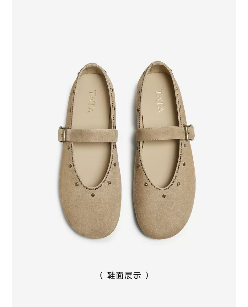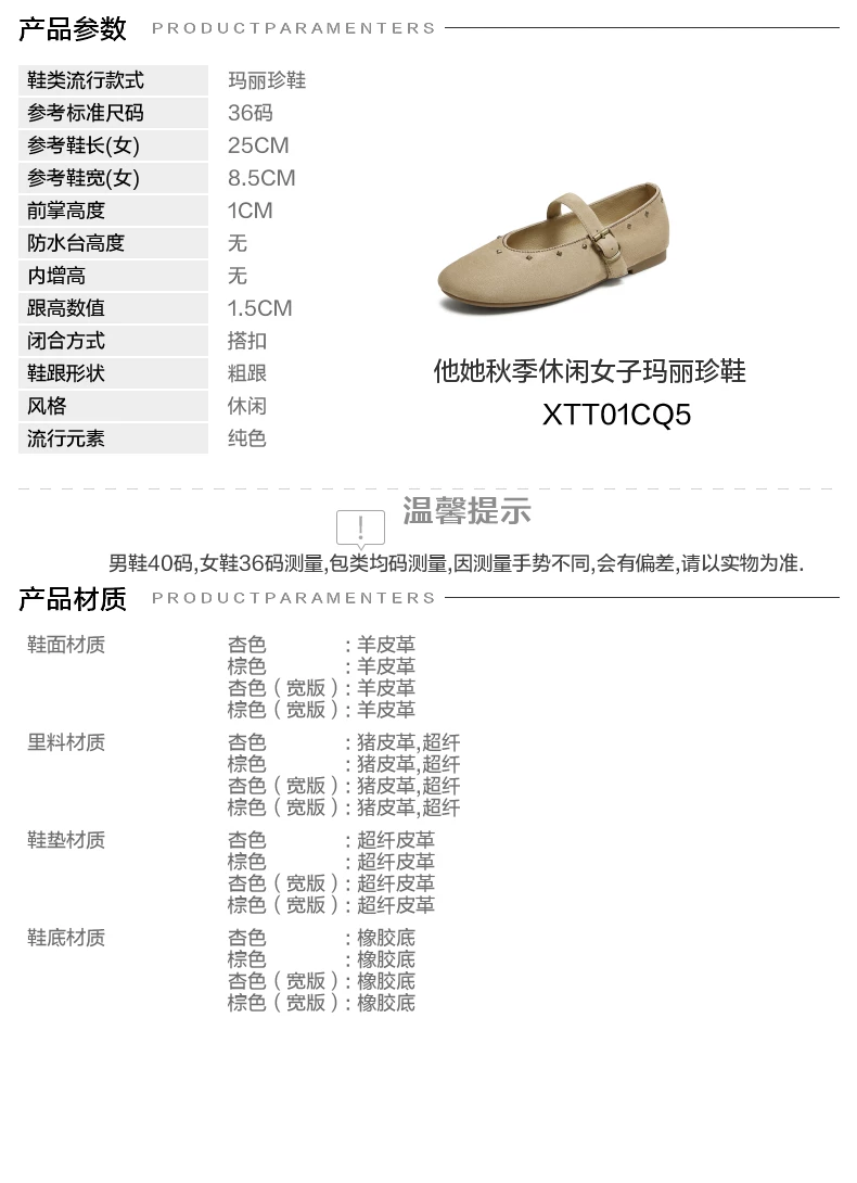 - Giày Nữ TATA 2025 Mùa Đông Da Cừu Thời Trang Đa Năng Da Thật Chính Hãng Da Mary Jane Giày Chun Gót Giày XTT01CQ5