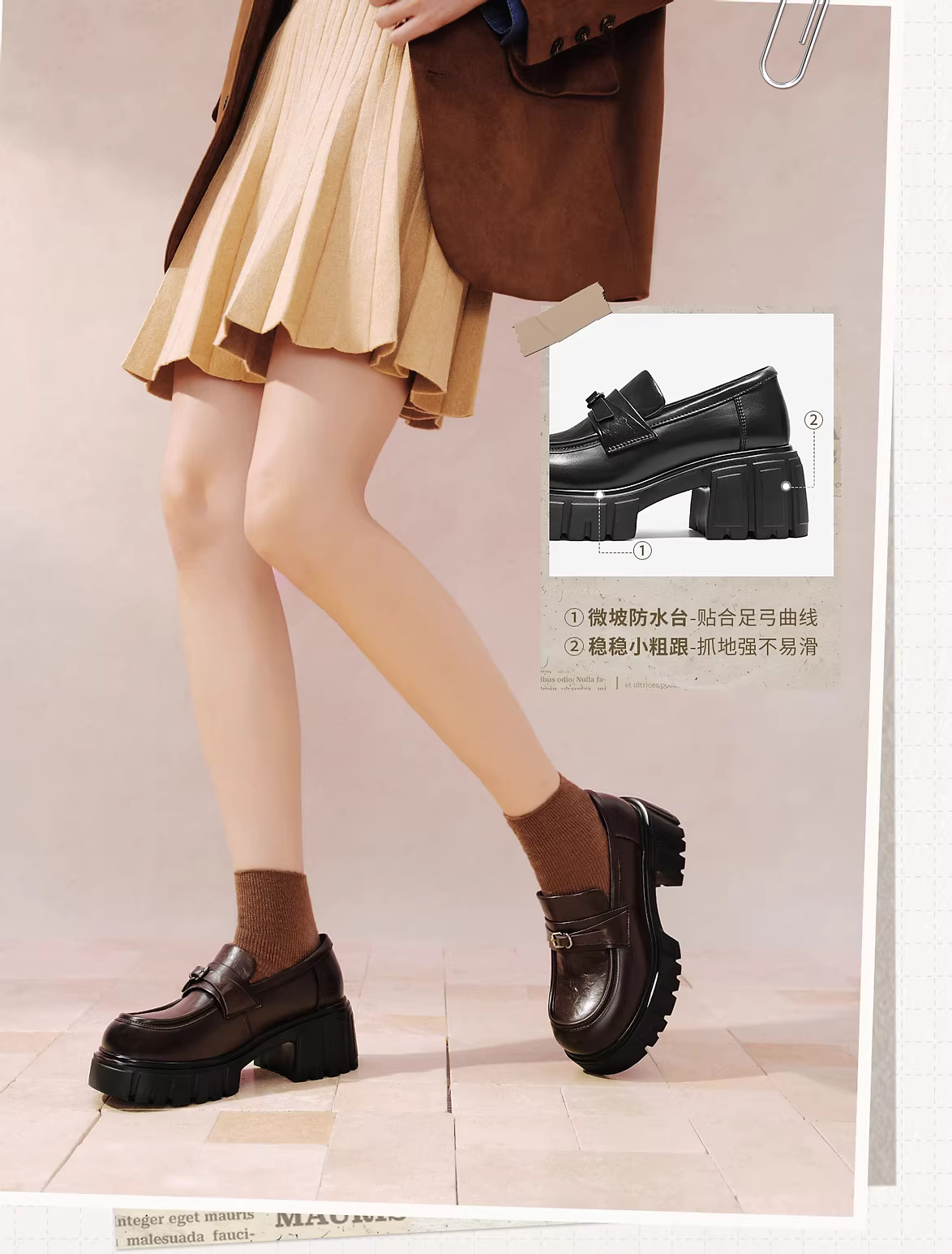 - Giày Nữ TATA 2025 Mùa Đông Mới Giày Loafer Thời Trang Giày Da Đế Dày CHY06AA6