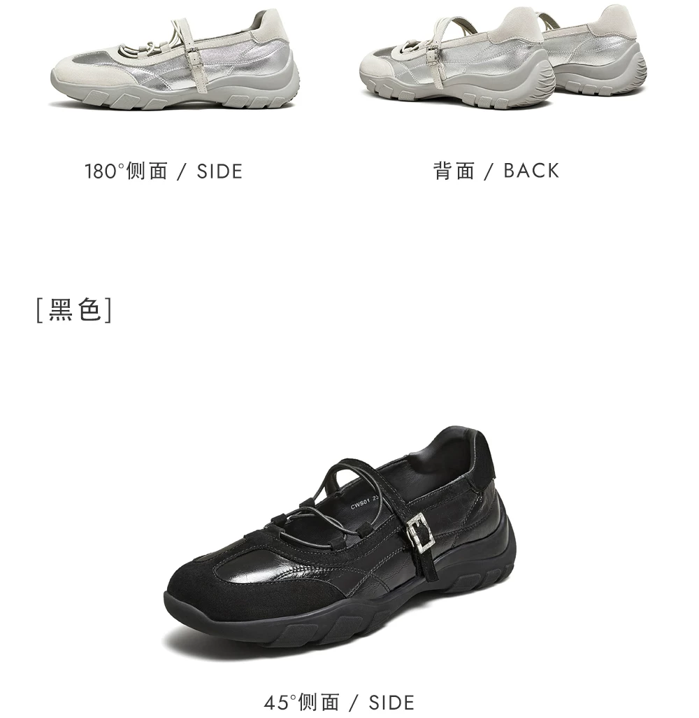 - Giày Nữ TATA 2025 Thể Thao Mary Jane Giày Mùa Đông Giày Thường Đa Năng Da Thật Chính Hãng Da Giày Ballet CWS01CQ5