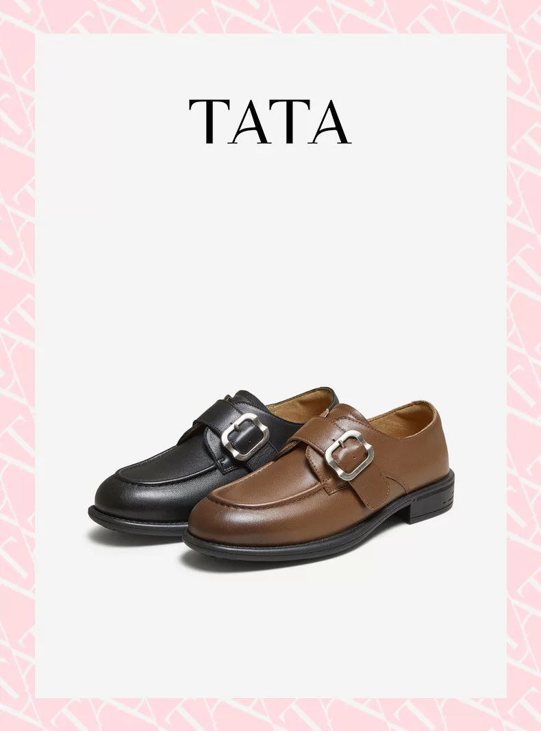 - Giày Nữ TATA 2025 Thời Trang Mùa Đông Giày Casual Nữ Đa Năng Màu Đen Da Thật Chính Hãng Da Giày Loafer NUT02CM5