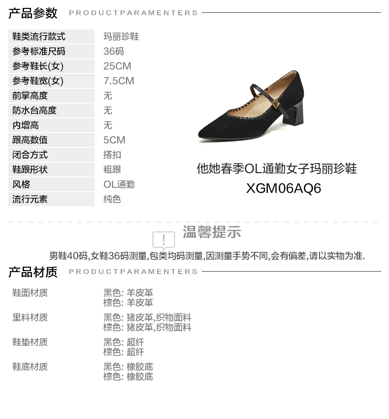 - Giày Nữ TATA 2026 Mùa Xuân Da Cừu Mary Jane Giày Nông Giày Đơn Thanh Lịch Giày Thường XGM06AQ6