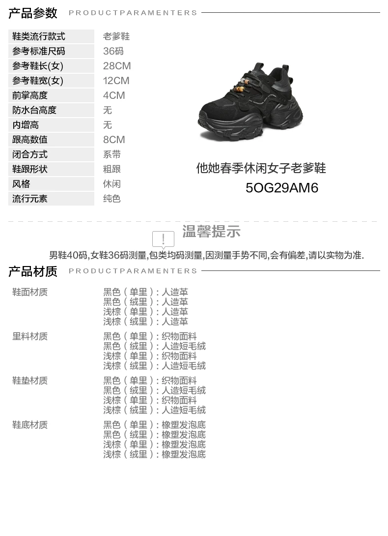 - Giày Nữ TATA 2026 Mùa Xuân Mới Giày Thể Thao Thông Thường Đa Năng Đế Dày Tăng Chiều Cao Giày Bố 5OG29AM6