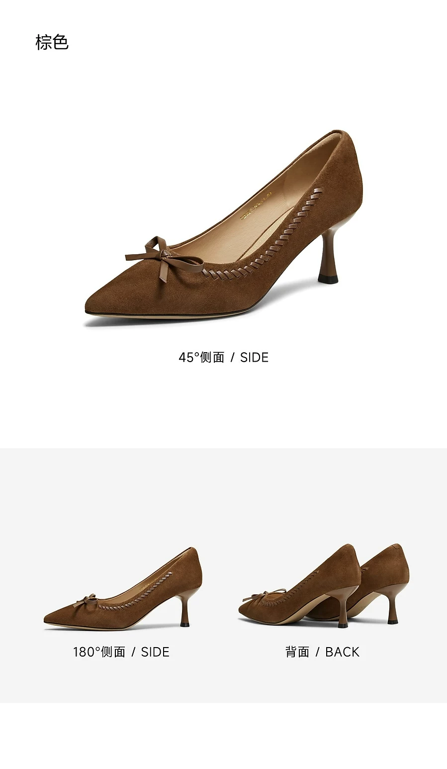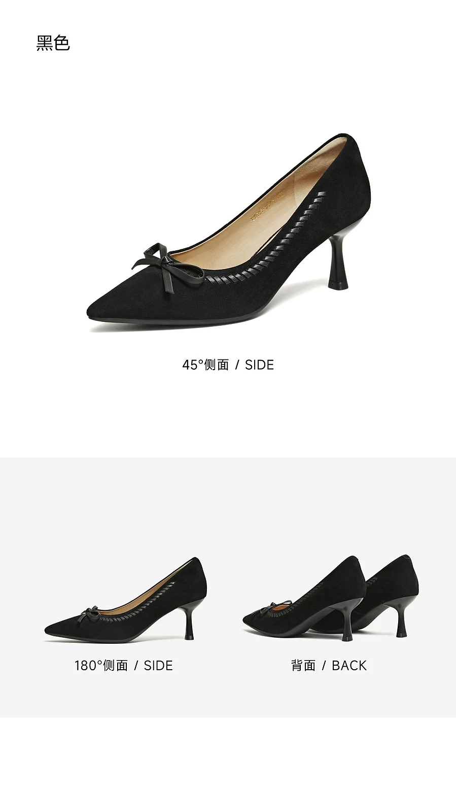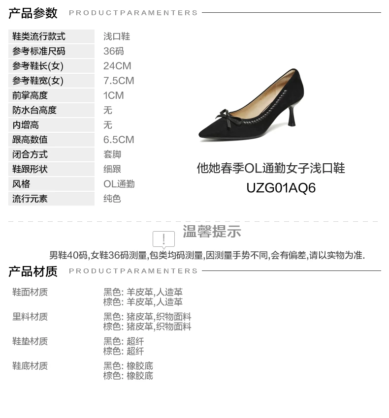 - Giày Nữ TATA 2026 Mùa Xuân Mới Mũi Nhọn Giày Cao Gót Da Cừu Nữ Giữa Cao Miệng Dẹt Bơm UZG01AQ6