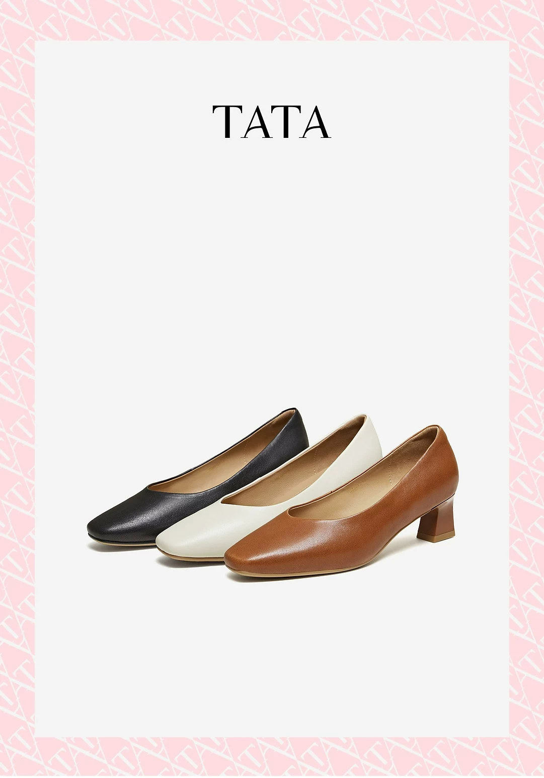 - Giày Nữ TATA 2026 Mùa Xuân Phong Cách Mới Giày Đế Thấp Thời Trang Đa Năng Da Cừu Giày Cao Gót UZJ01AQ6