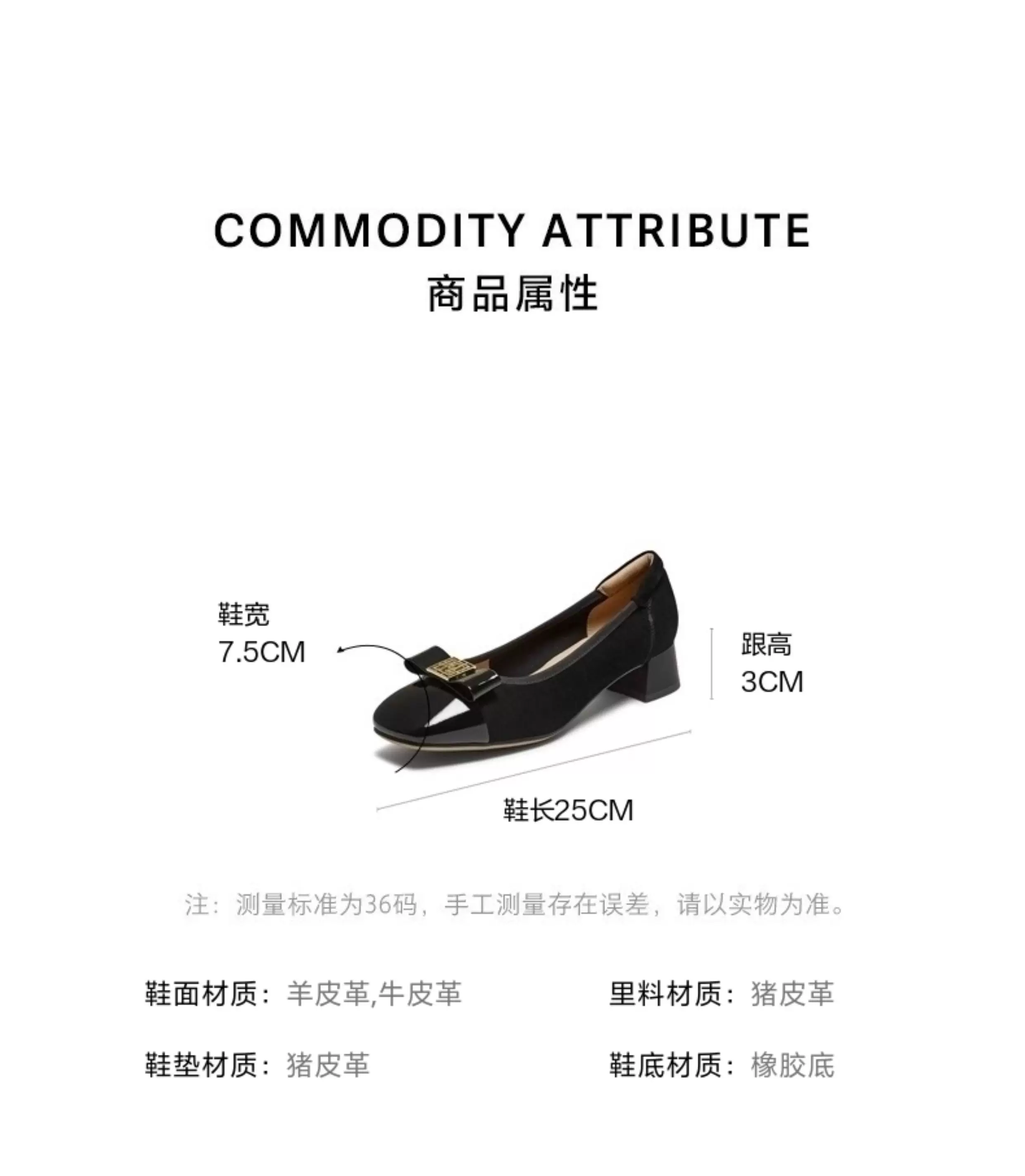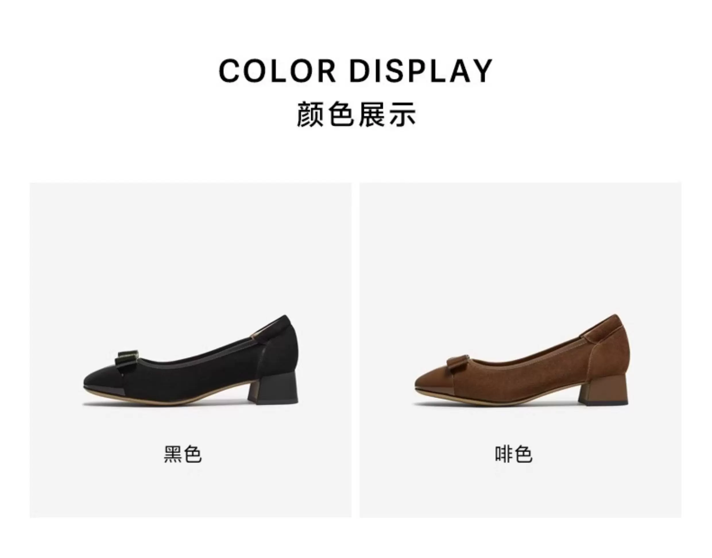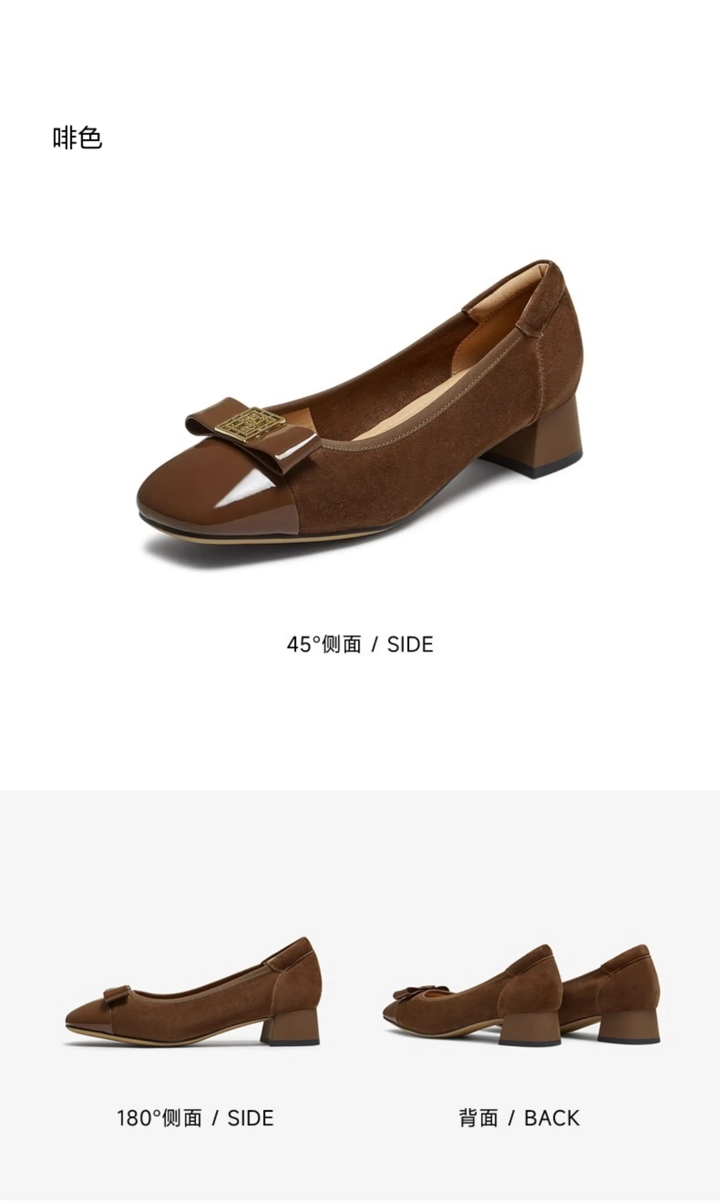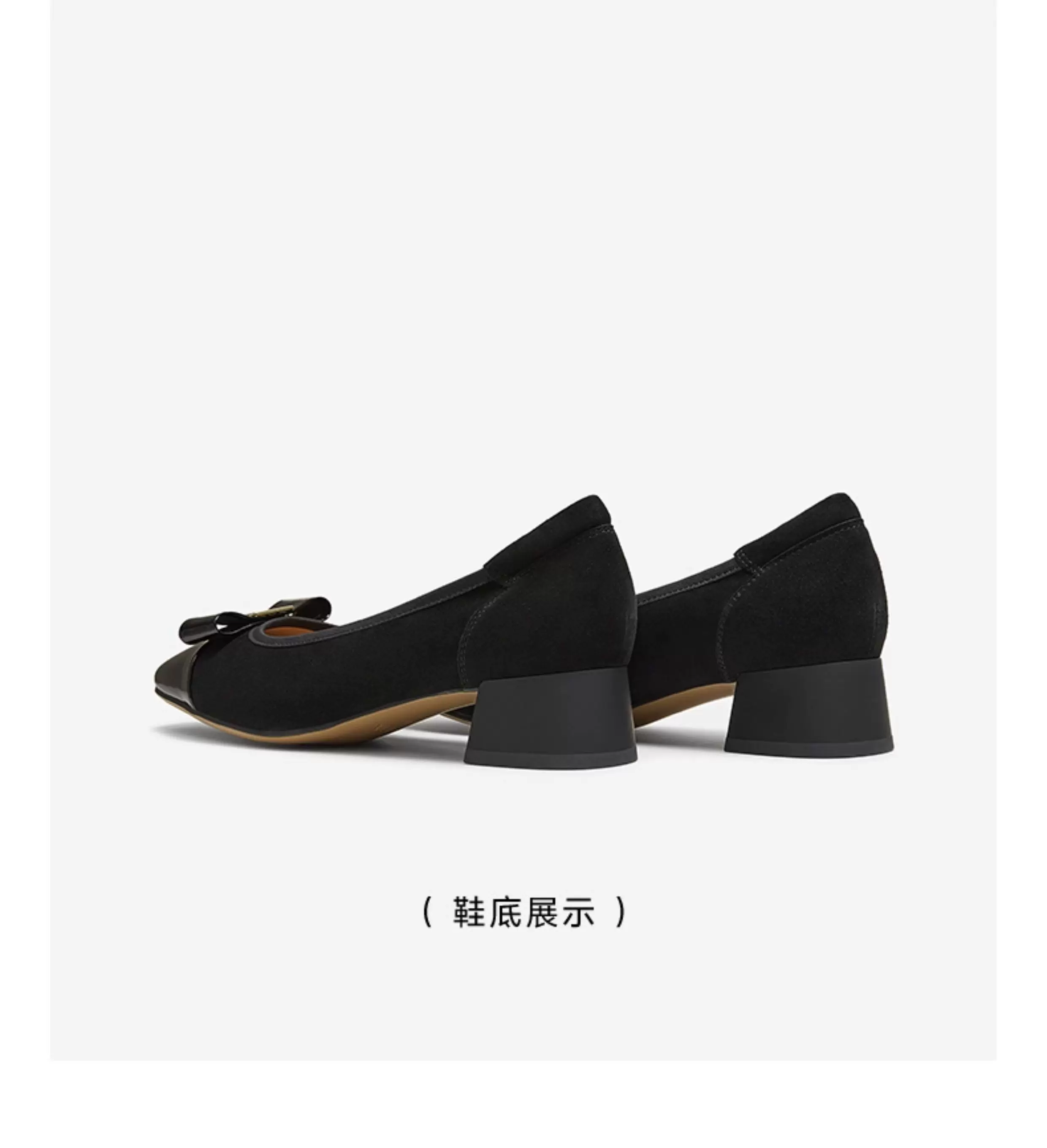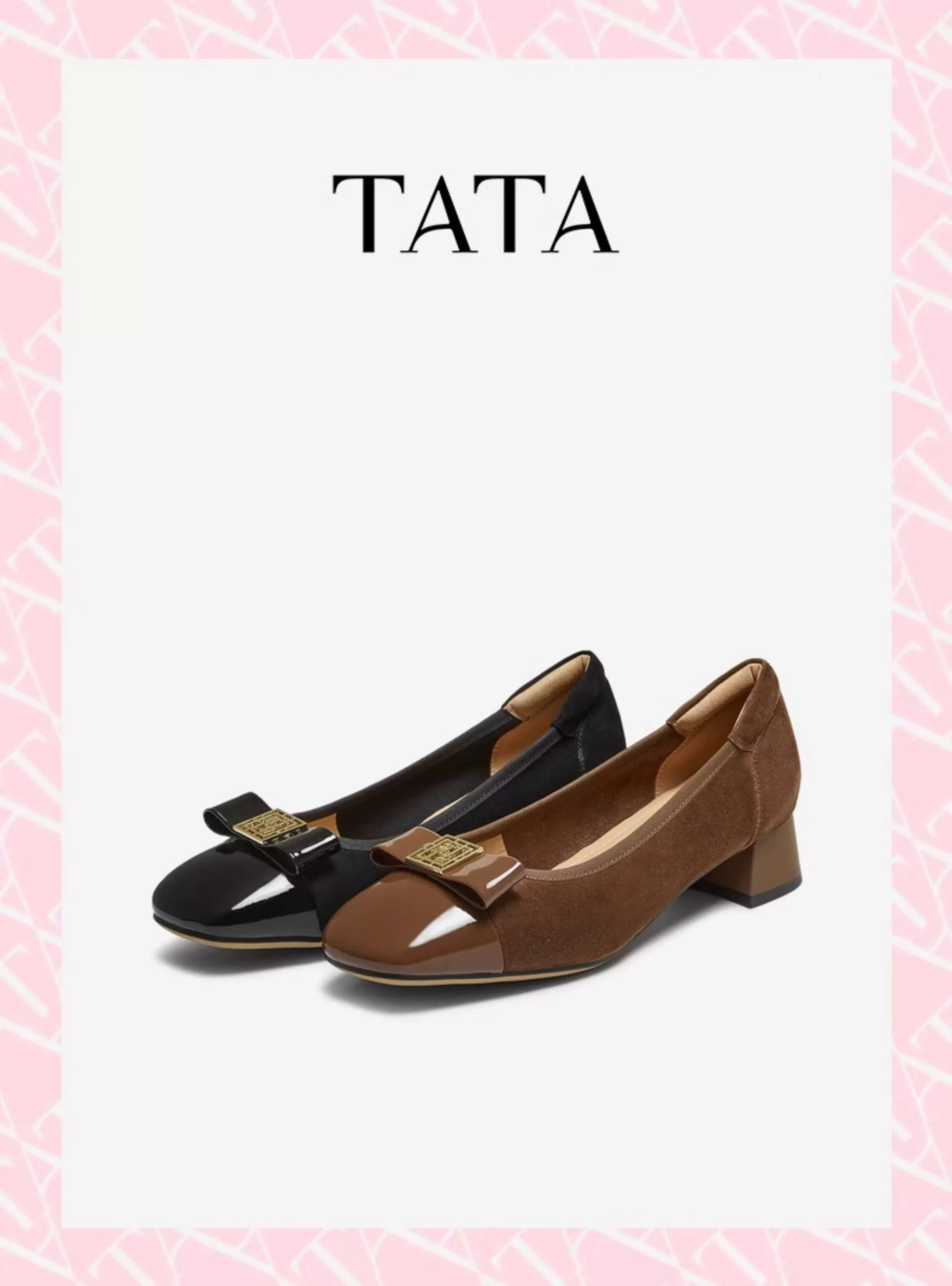 - Giày nữ TATA mùa đông 2025 kiểu lười miệng nông, giày đơn, da thật mới, gót dày XTS01CQ5