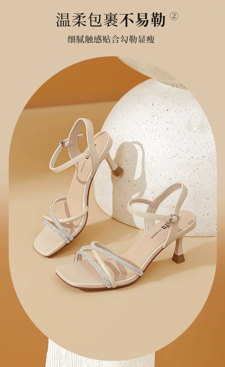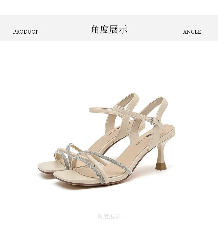 - Giày sandal cao gót Dadong dành cho nữ, kiểu dáng mùa hè mới 2025, mũi vuông, gót nhọn, thoải mái cho bàn chân, phù hợp phối với chân váy.