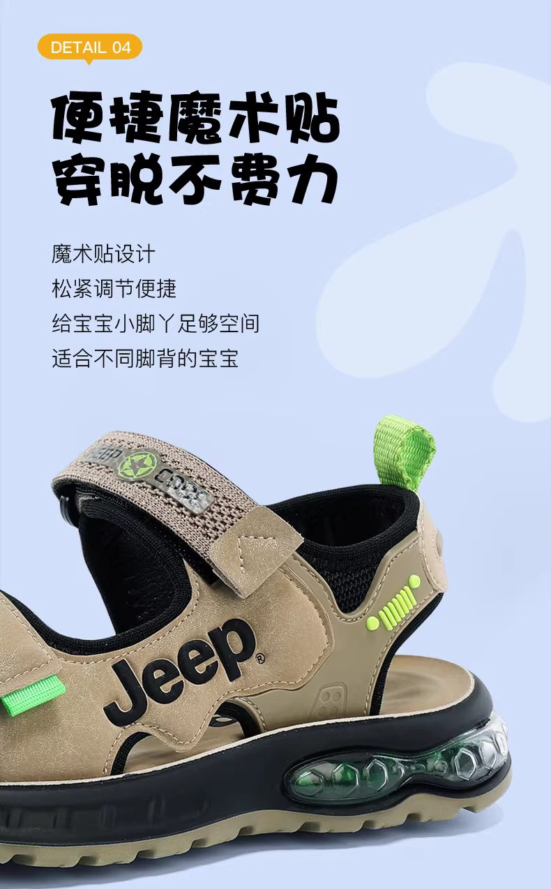 - Giày sandal hở mũi kiểu Jeep cho bé trai có khóa dán, giày đi biển nhẹ cho bé và bé gái, giày trẻ em kiểu mới mùa hè 2024