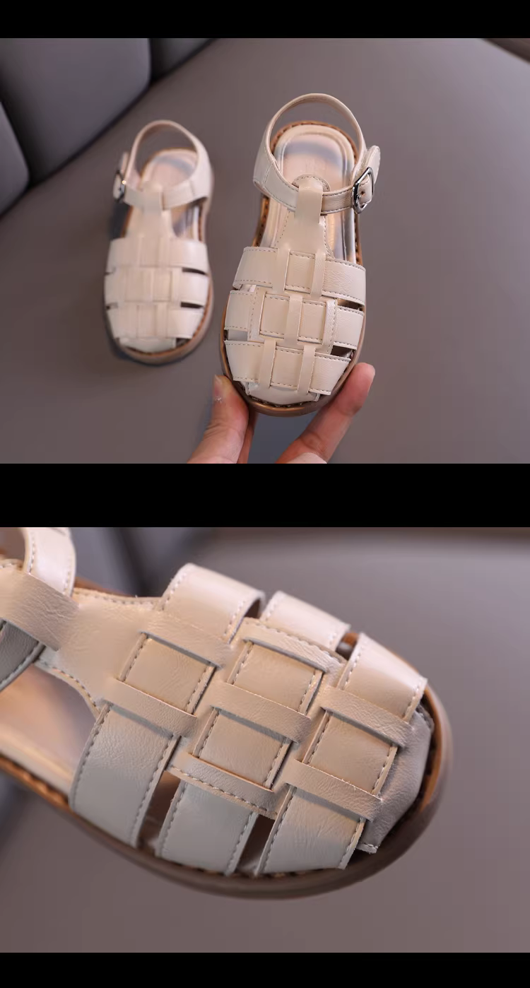 - Giày sandal nữ bé gái hè 2025 kiểu mới đế mềm mũi kín hot trend mạng xã hội giày công chúa bé gái retro giày đan lỗ thoáng khí