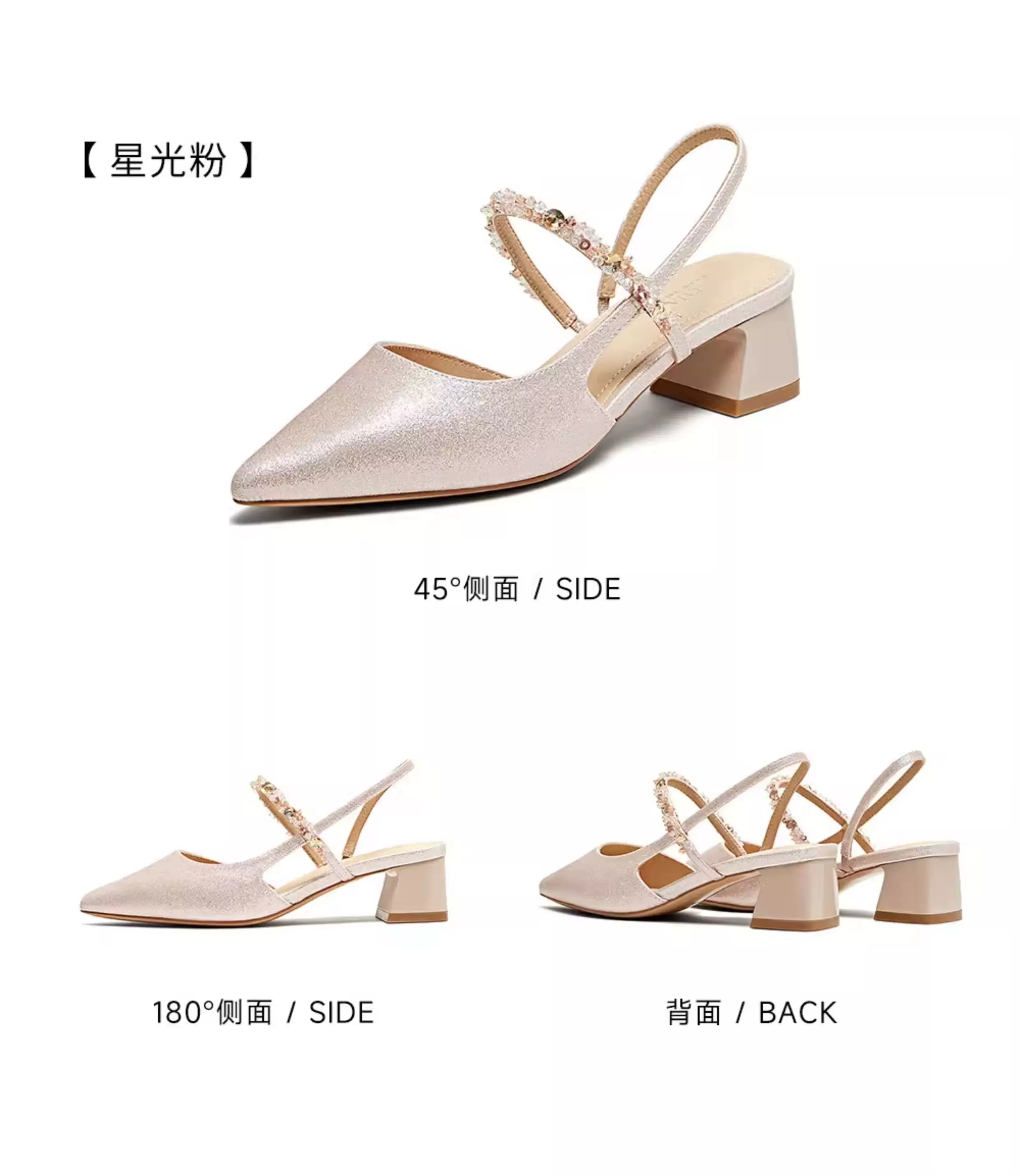 Giày Sandal nữ TATA Starlight kiểu Pháp thanh lịch, mũi kín, gót dày, hở gót, mẫu mới 2025, mã 7GY03BH5
