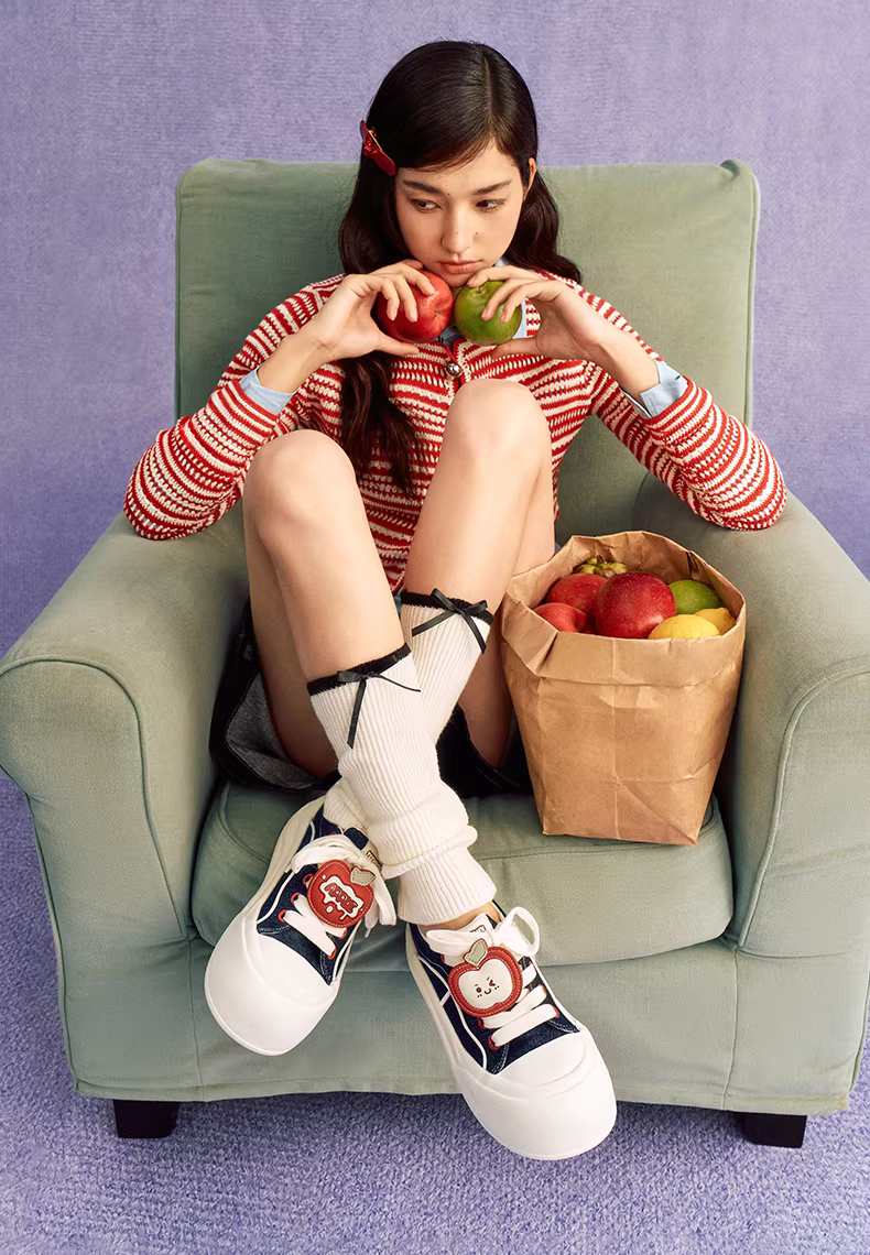 - Giày Sneaker Nữ Tianmeiyi Fruit Cloud đế dày tăng chiều cao, kiểu chunky, chất liệu canvas, phong cách thường ngày, mẫu mới Thu 2025