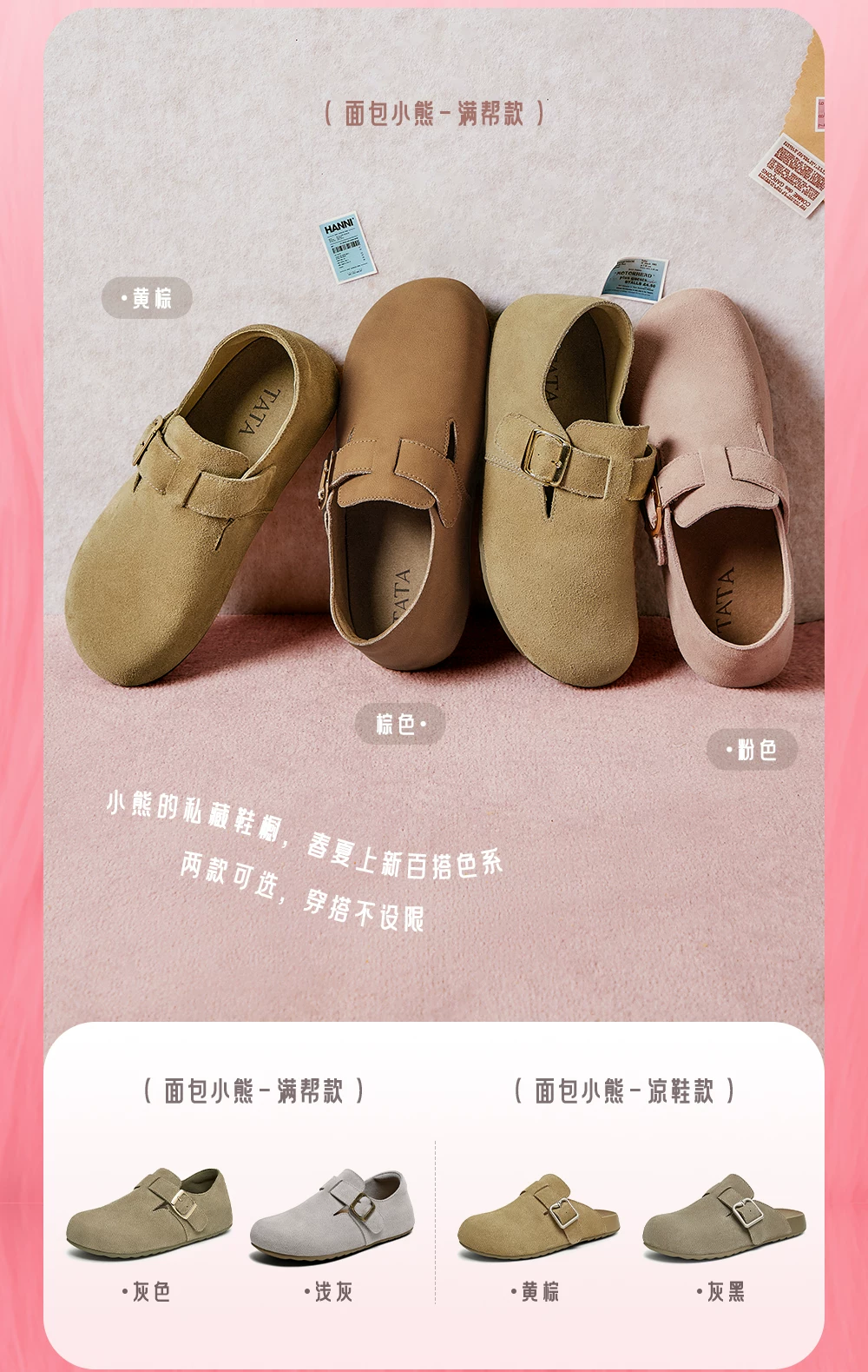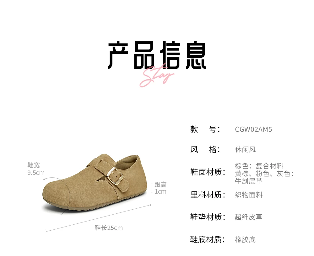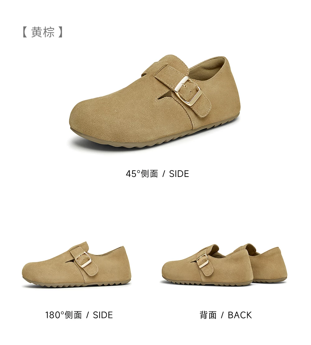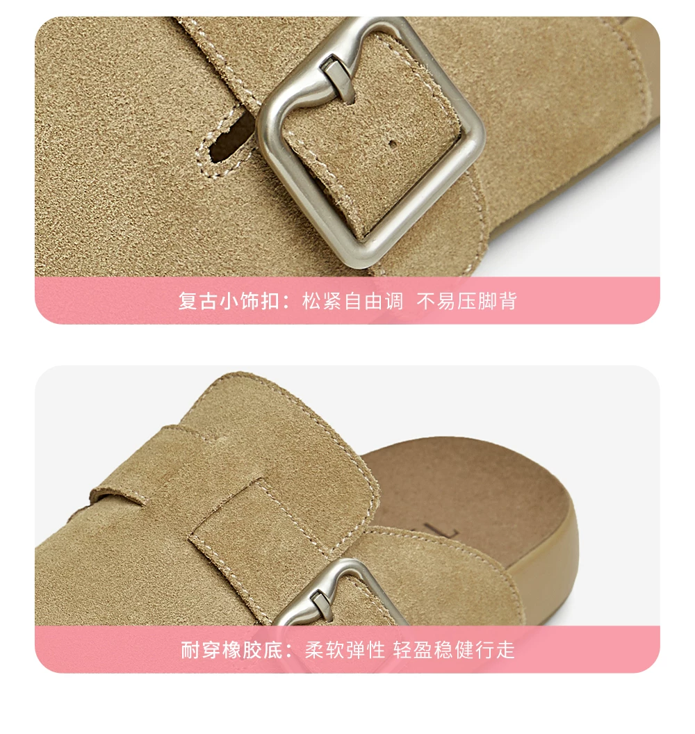 Giày TATA Bear Giày Birkenstock màu nâu Giày đế bằng nữ Giày nữ mùa xuân mới CGW02AM5