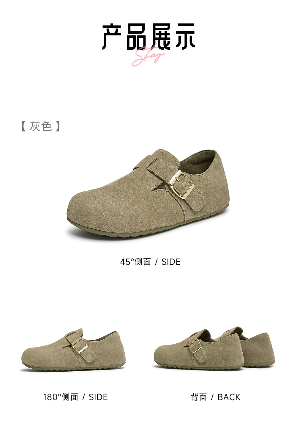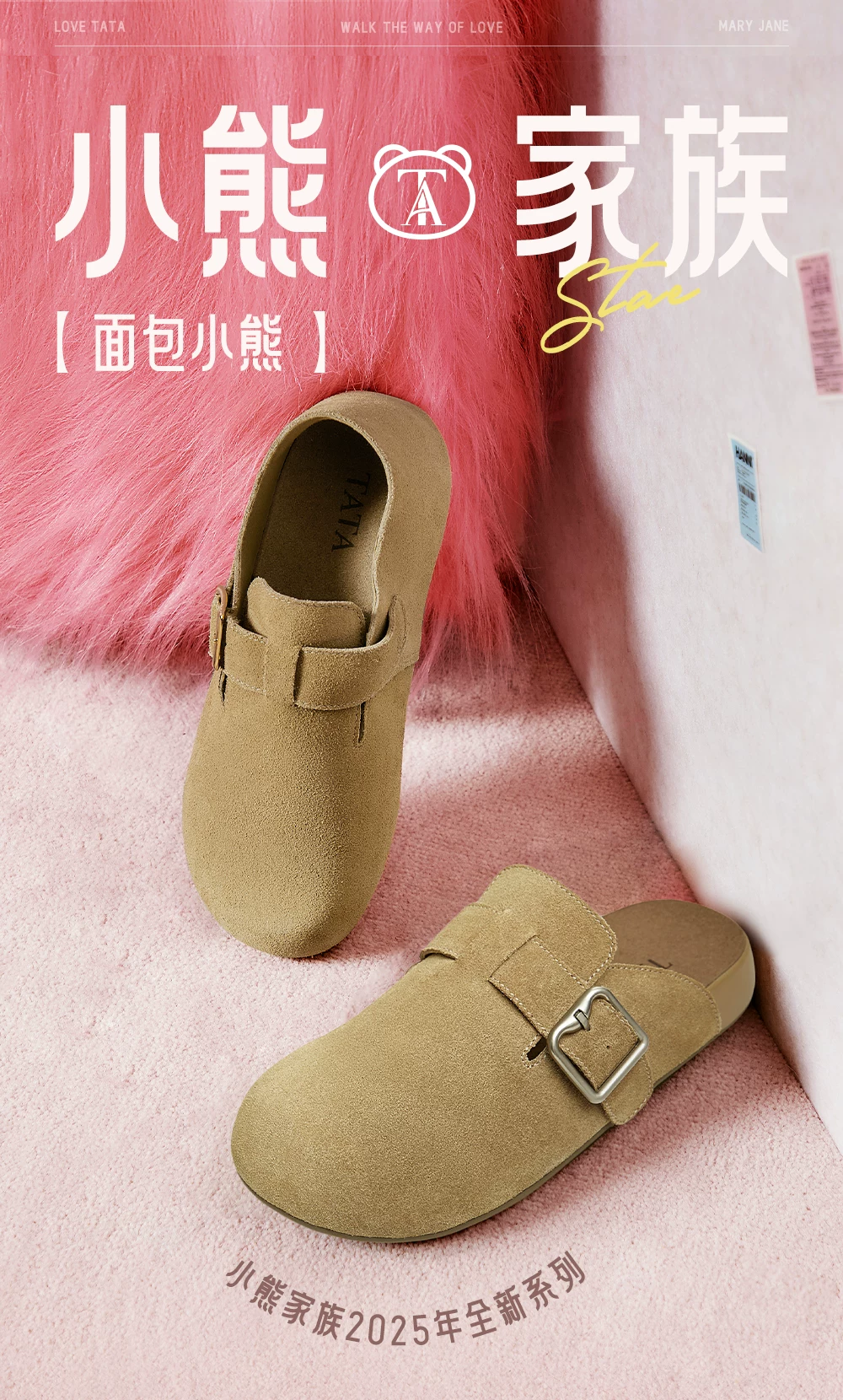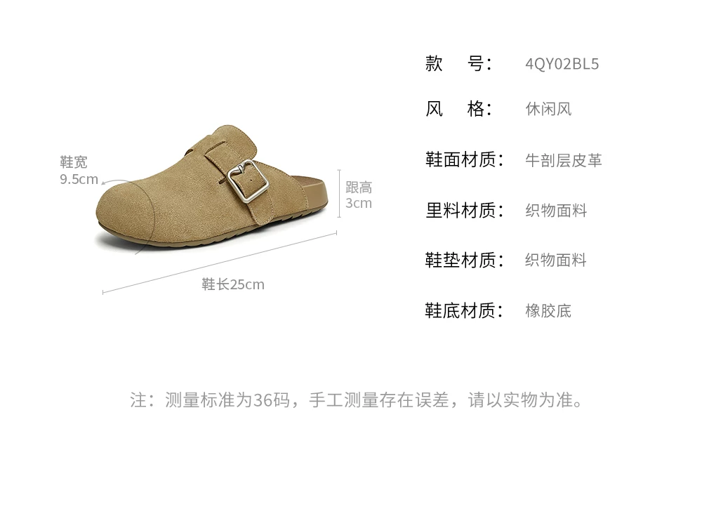 Giày TATA Bear Giày Birkenstock màu nâu Giày đế bằng nữ Giày nữ mùa xuân mới CGW02AM5