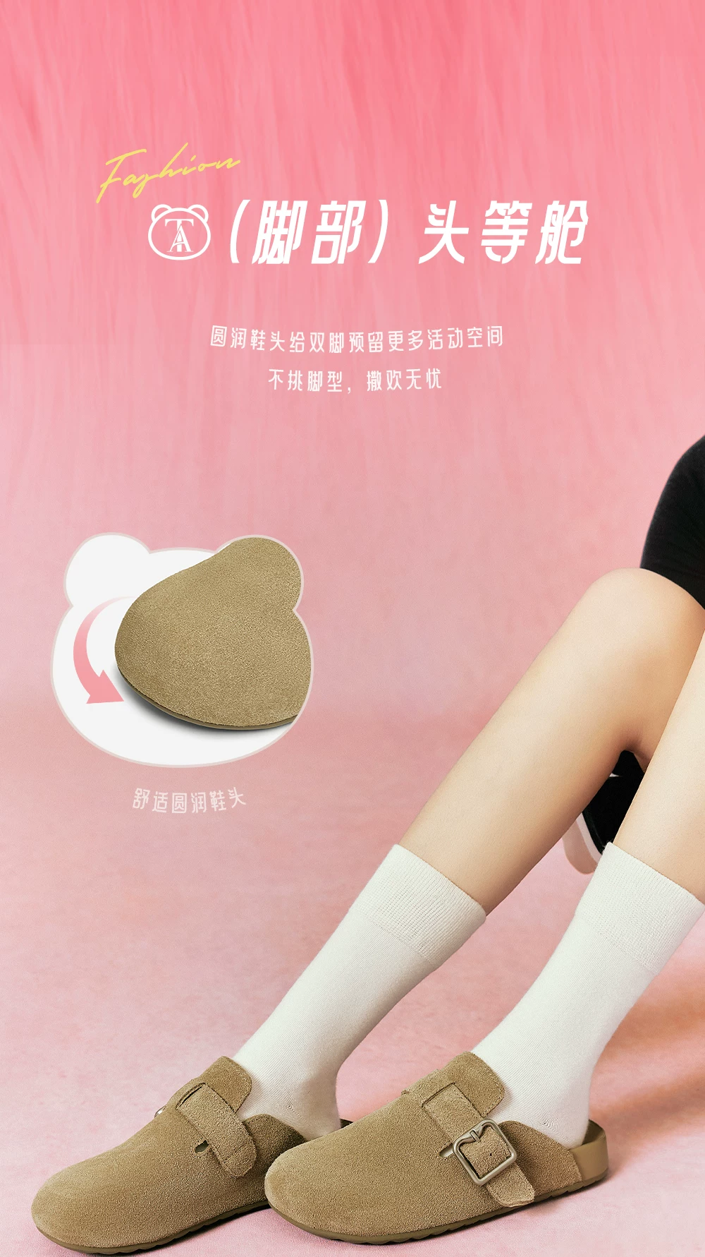 - Giày TATA Bear Giày Birkenstock màu nâu Giày đế bằng nữ Giày nữ mùa xuân mới CGW02AM5