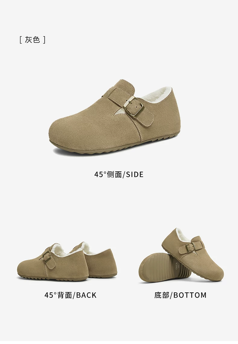 - Giày TATA Birkenstock nữ 2025 kiểu mới lông nhung mềm mại, kiểu lười giữ ấm bằng cotton CGW05AM5