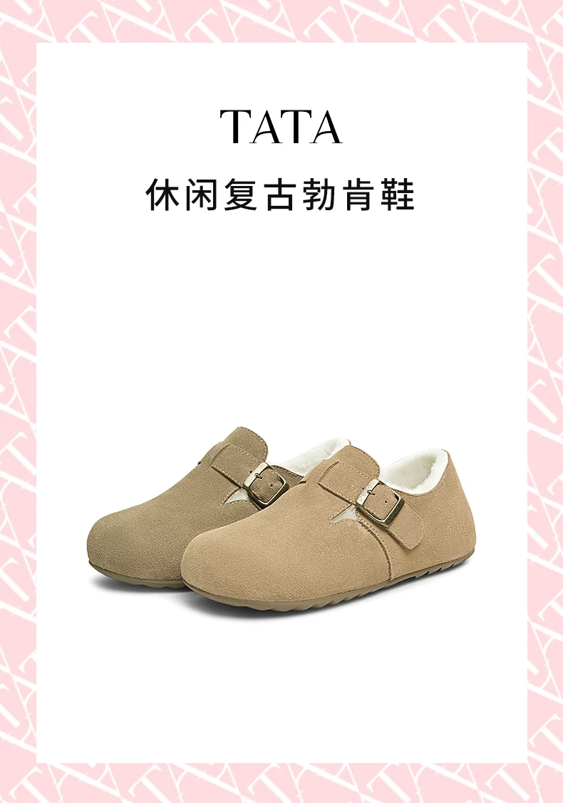 Giày TATA Birkenstock nữ 2025 kiểu mới lông nhung mềm mại, kiểu lười giữ ấm bằng cotton CGW05AM5
