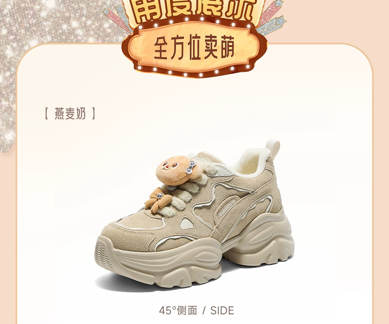 Giày TATA Butter Bear Dad Giày mùa đông nữ Giày đế dày đa năng tăng chiều cao có lót lông cừu GXX02DM5