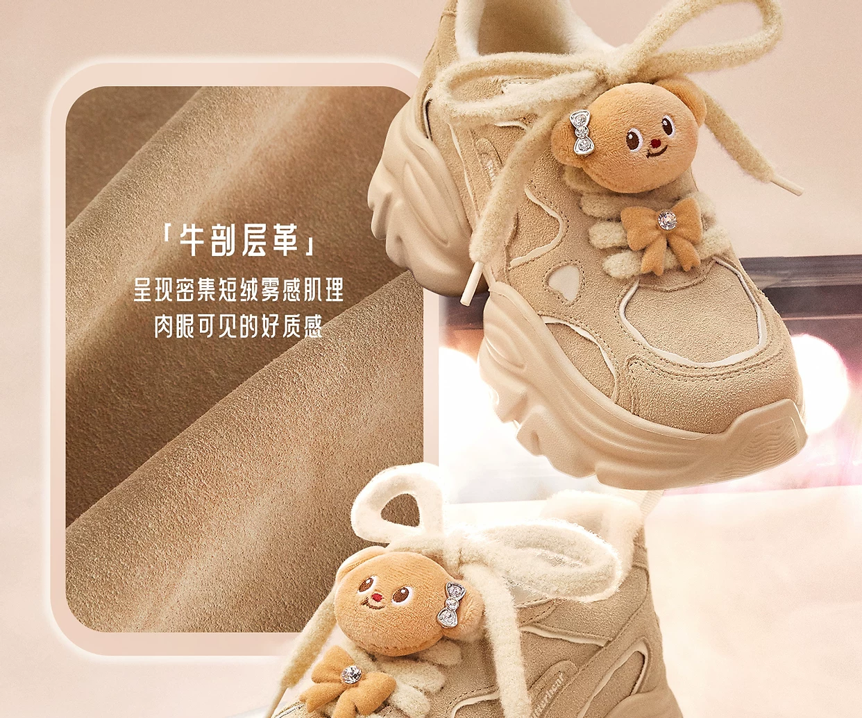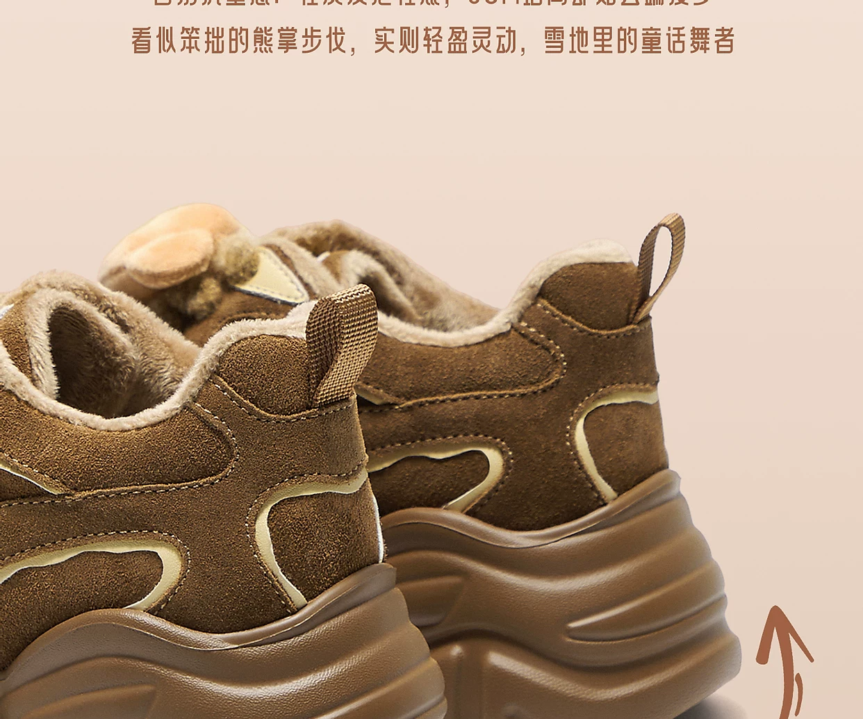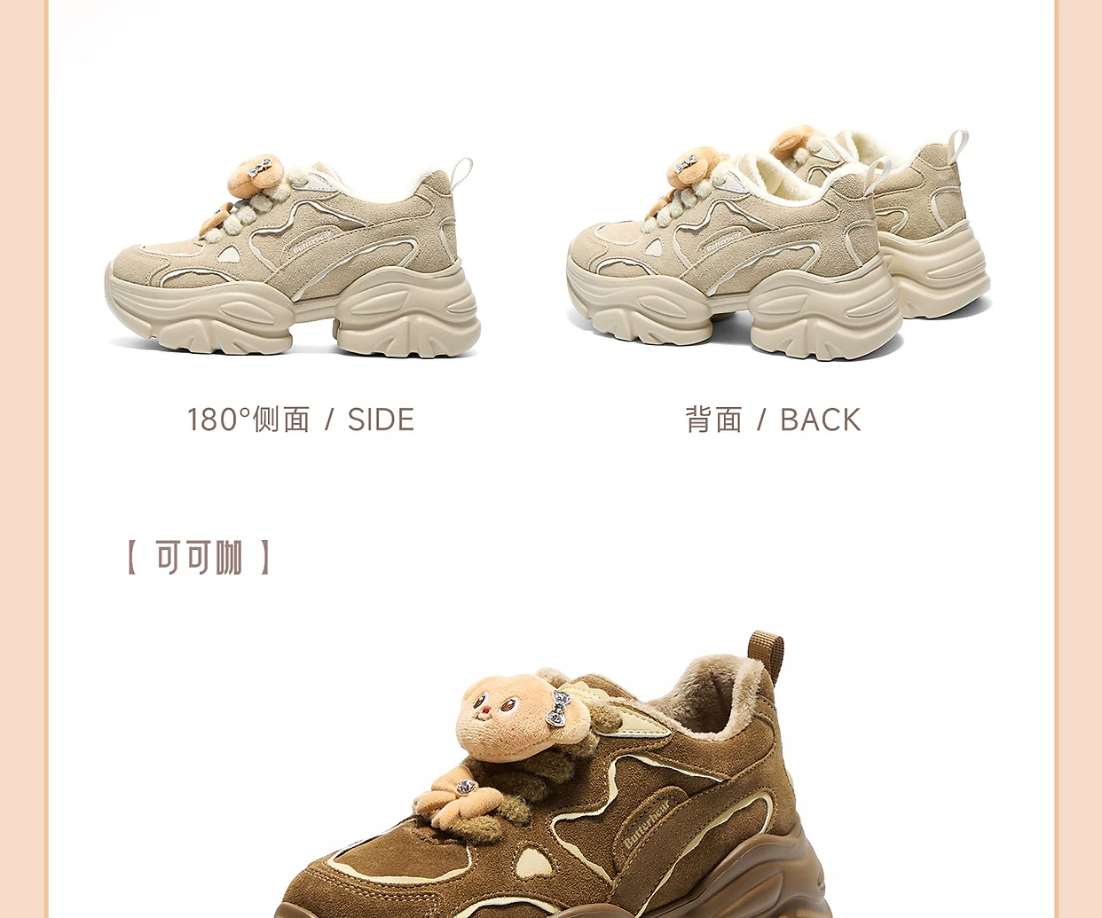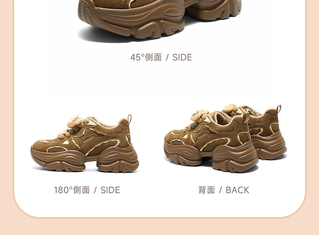- Giày TATA Butter Bear Dad Giày mùa đông nữ Giày đế dày đa năng tăng chiều cao có lót lông cừu GXX02DM5
