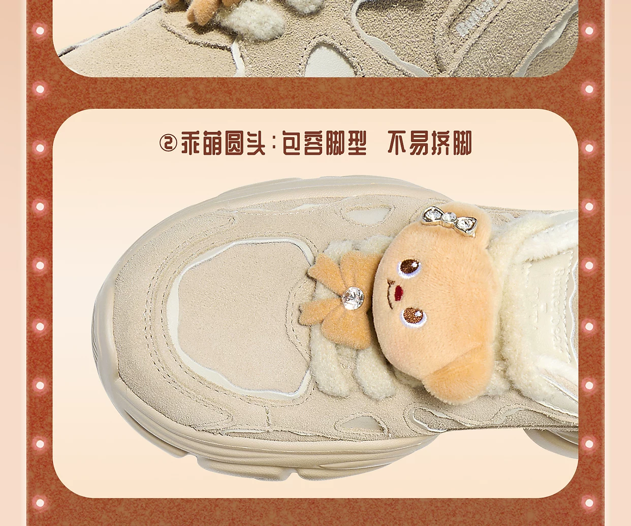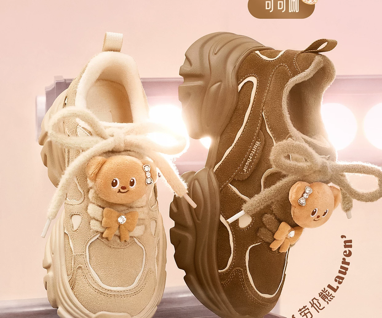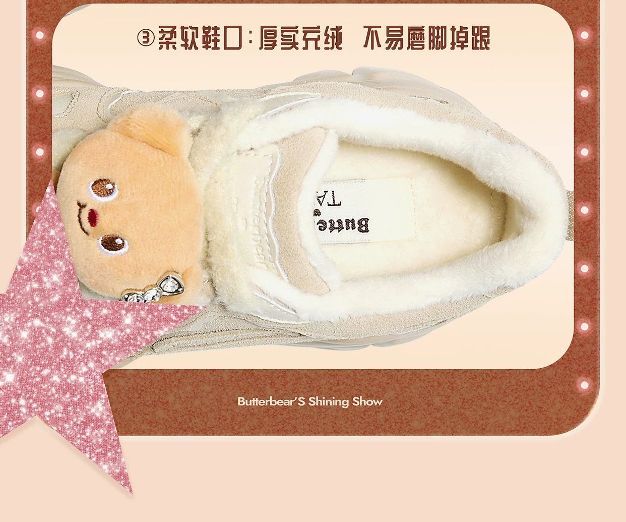 - Giày TATA Butter Bear Dad Giày mùa đông nữ Giày đế dày đa năng tăng chiều cao có lót lông cừu GXX02DM5