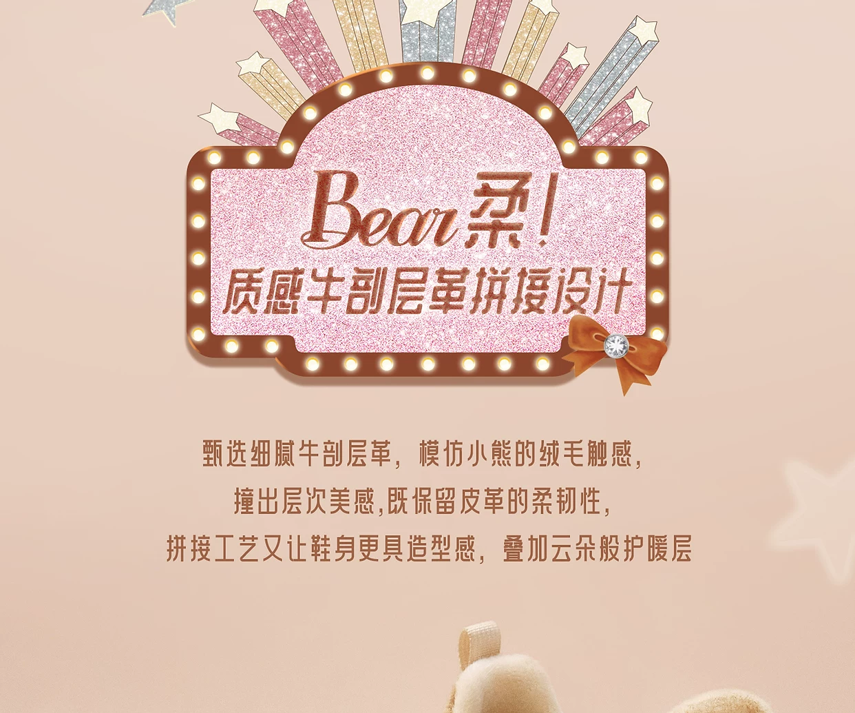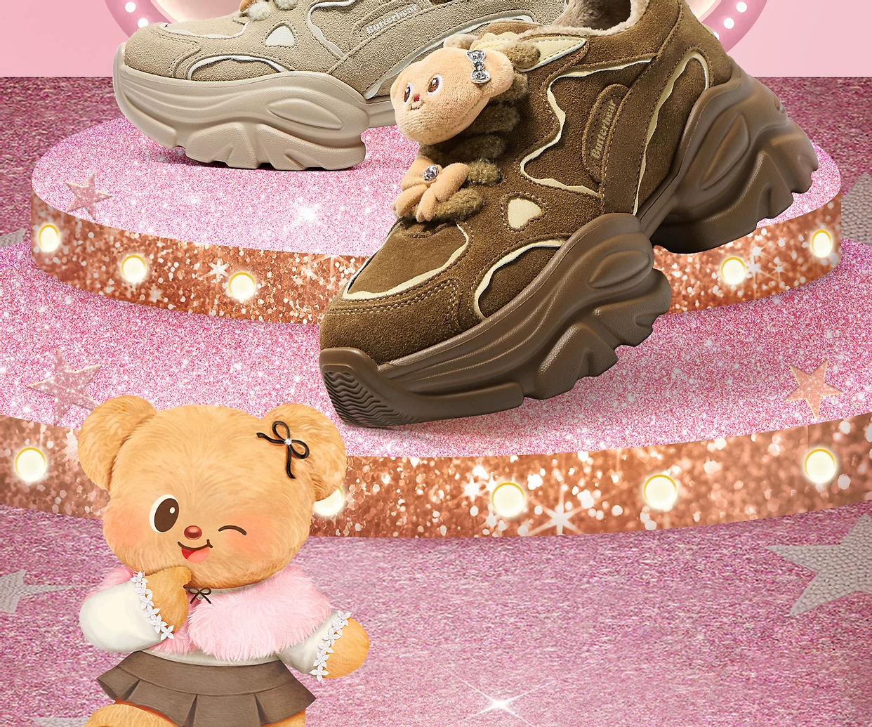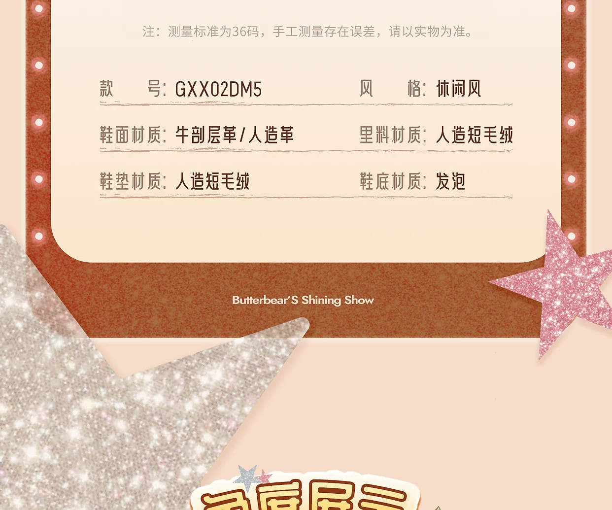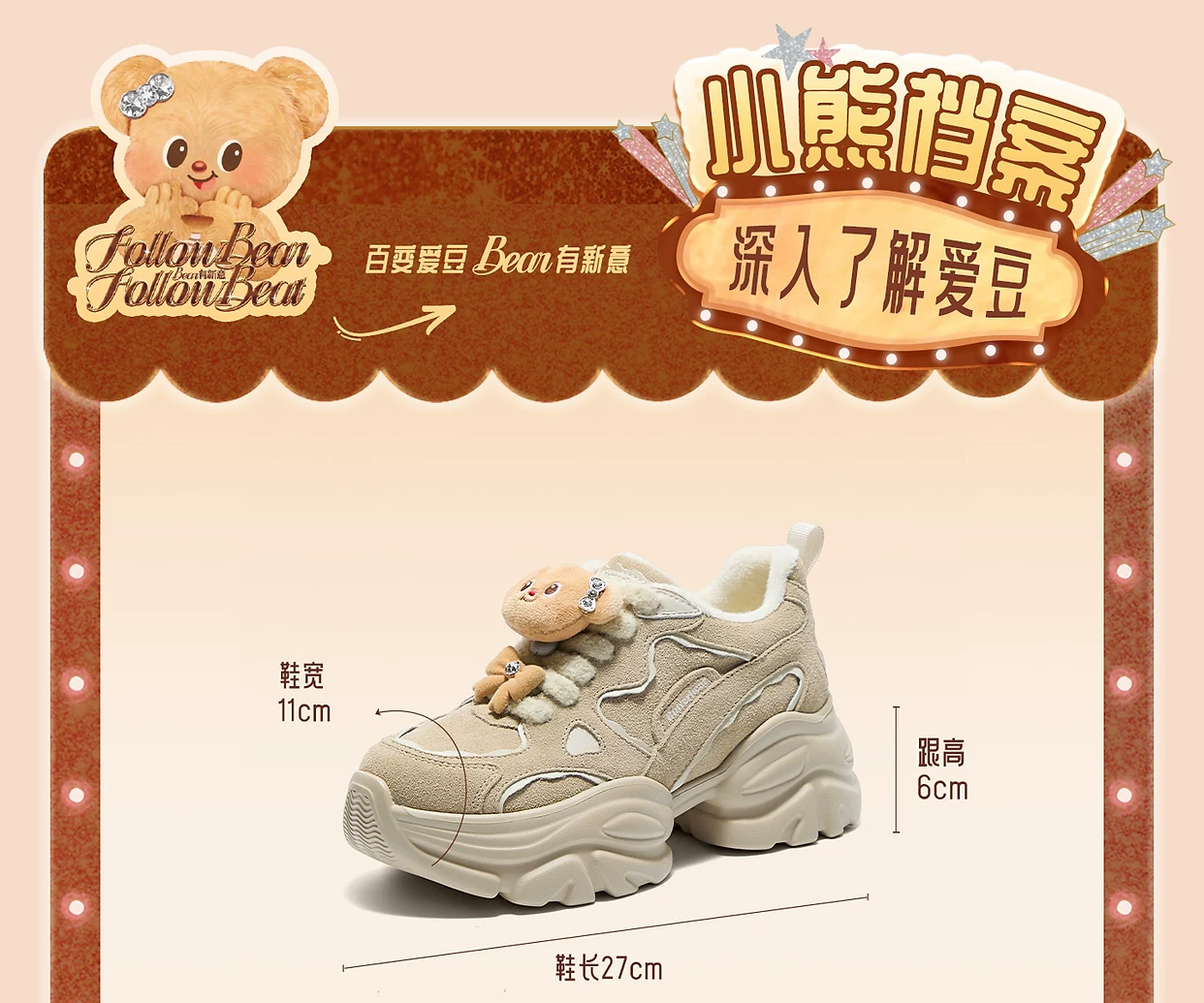 - Giày TATA Butter Bear Dad Giày mùa đông nữ Giày đế dày đa năng tăng chiều cao có lót lông cừu GXX02DM5