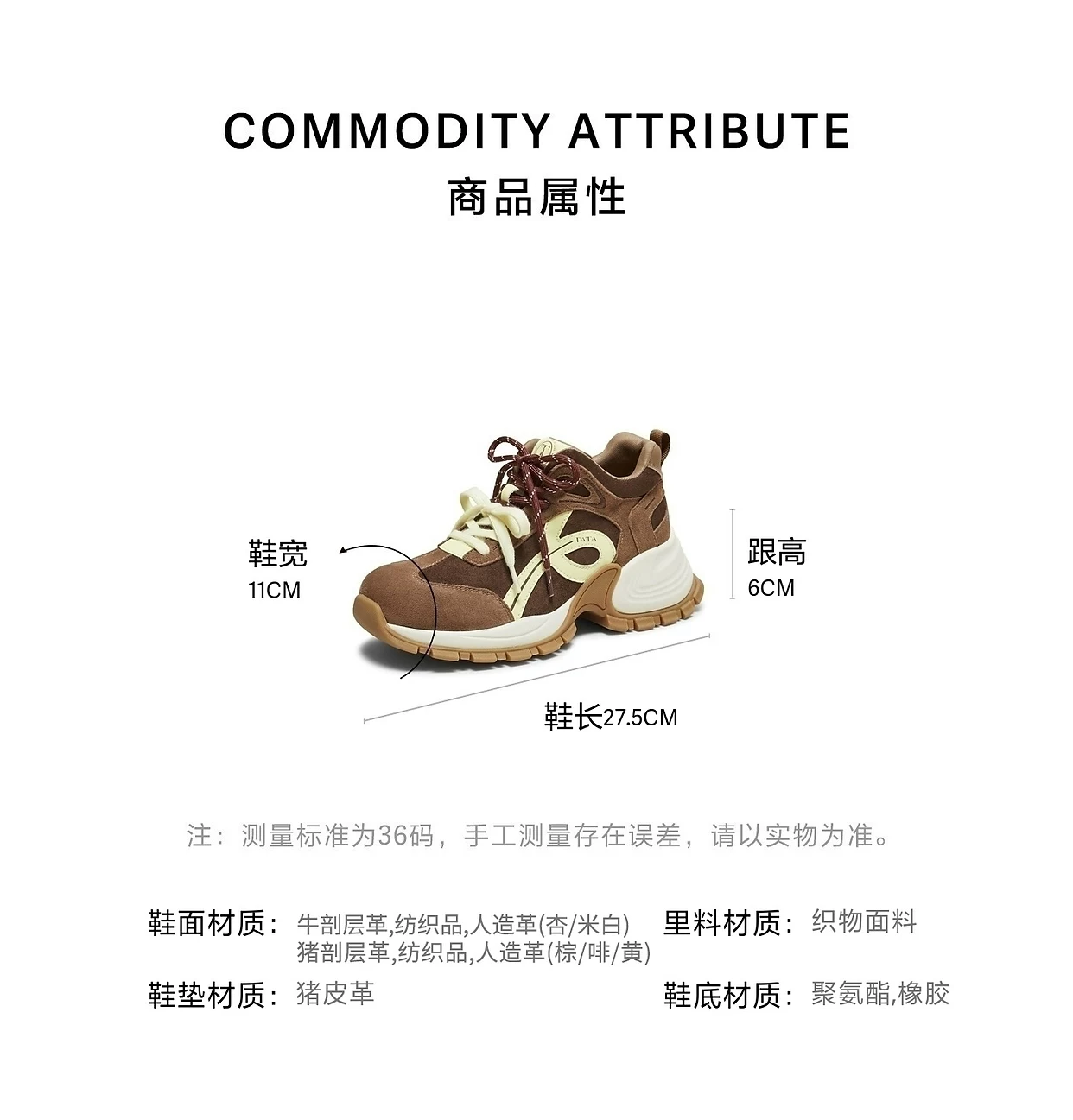 - Giày TATA Dad Shoes 2025 Mùa Đông Mẫu Mới Thời Trang Giày Thường Ngày Đa Năng Tăng Chiều Cao CJA01DM5