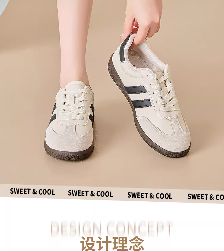 Giày thể thao cổ điển kiểu Đức Dadong dành cho nữ, giày thể thao đế bằng thường ngày mùa thu đông 2025 mới, giày phối với quần ống rộng, giày thể thao màu trắng.