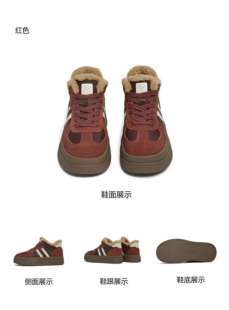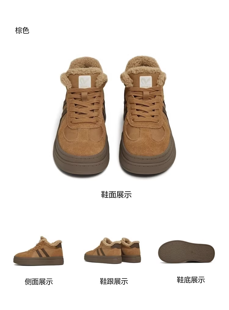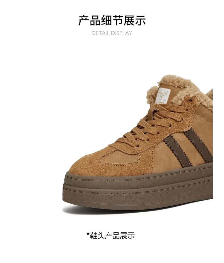 - Giày thể thao cổ điển tăng chiều cao đế dày Tianmeiyi, giày thể thao nữ lót lông, giày lông, mẫu mới mùa đông 2025.