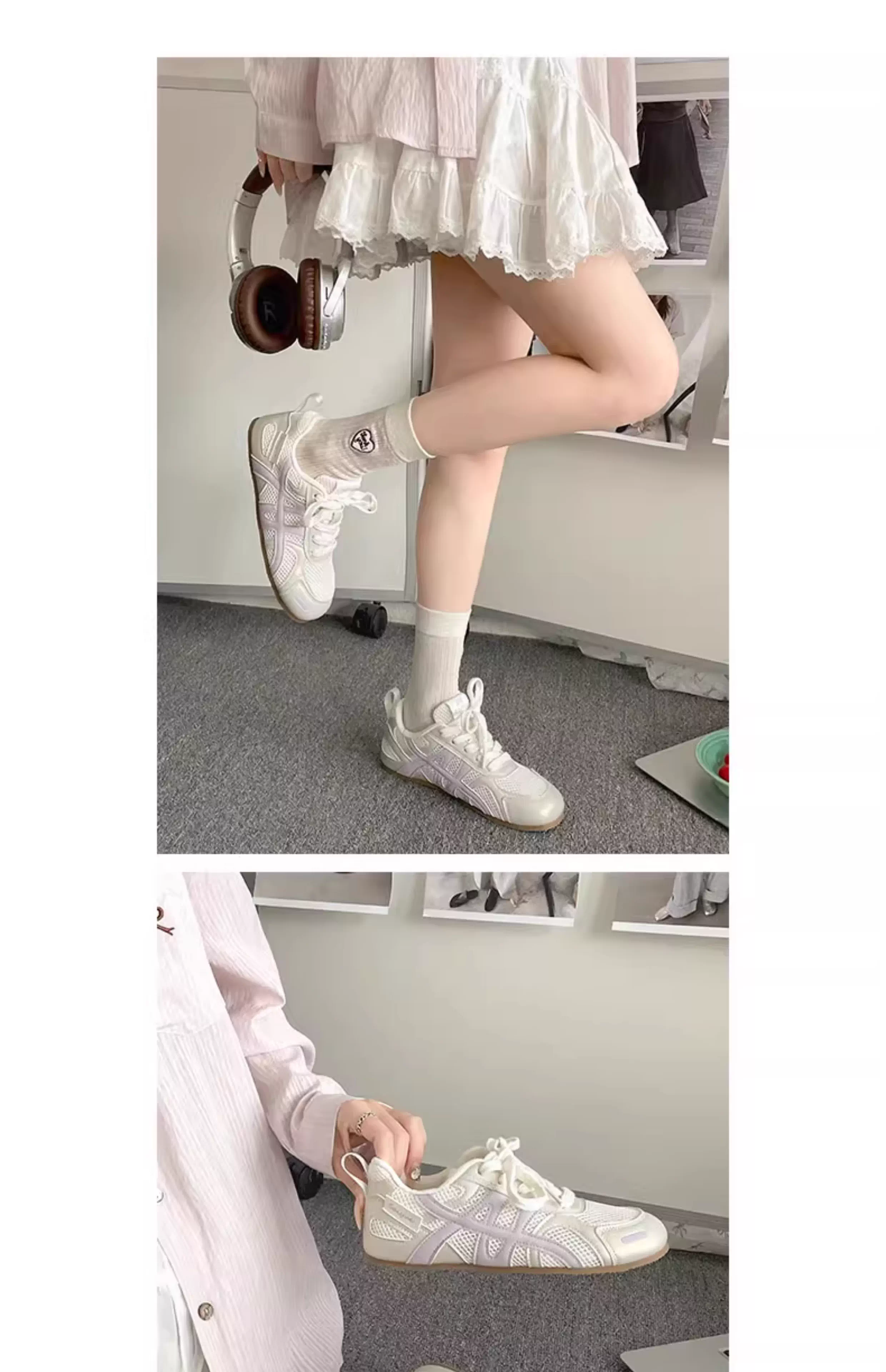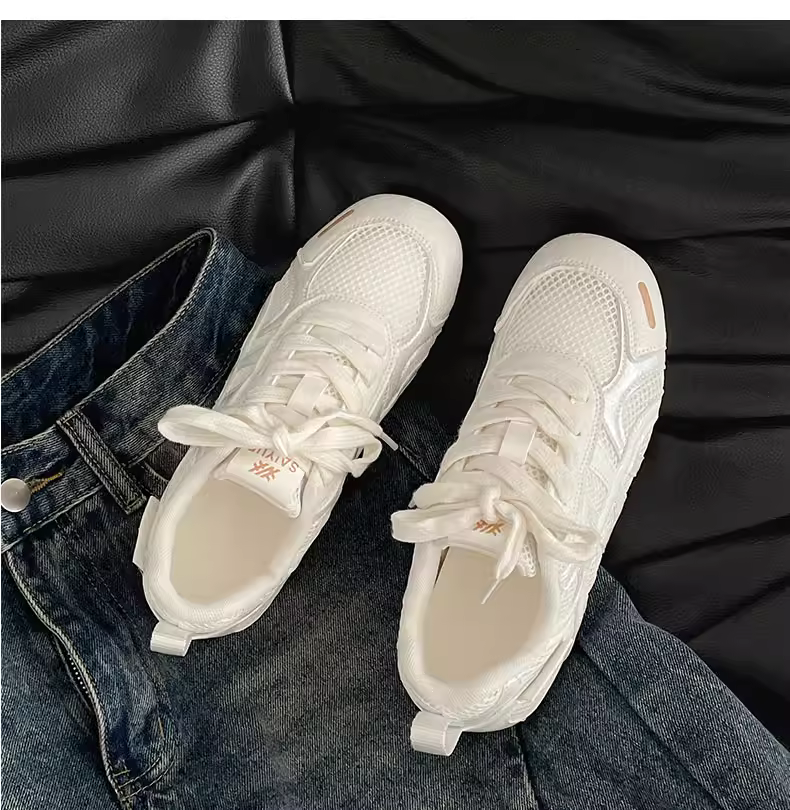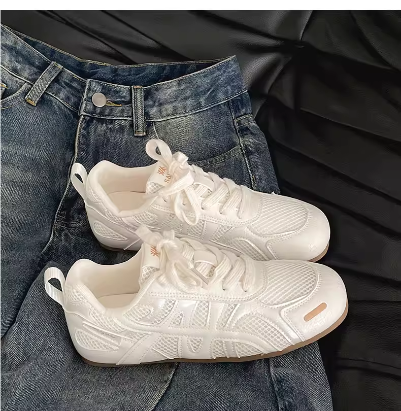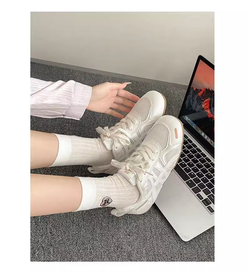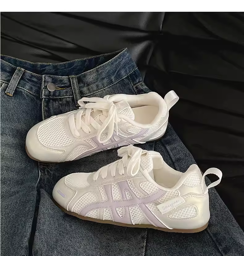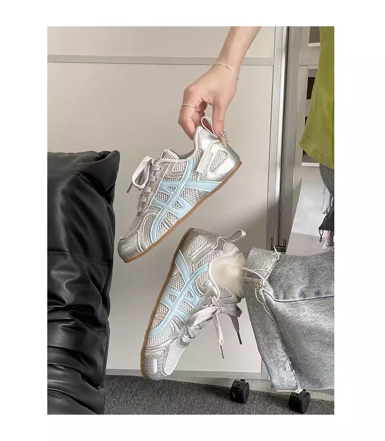 - Giày thể thao đế bằng tăng chiều cao kiểu cổ điển màu bạc dành cho nữ, kiểu mới mùa thu 2025, thích hợp phối cùng váy, giày thể thao đế mềm phong cách thường ngày.