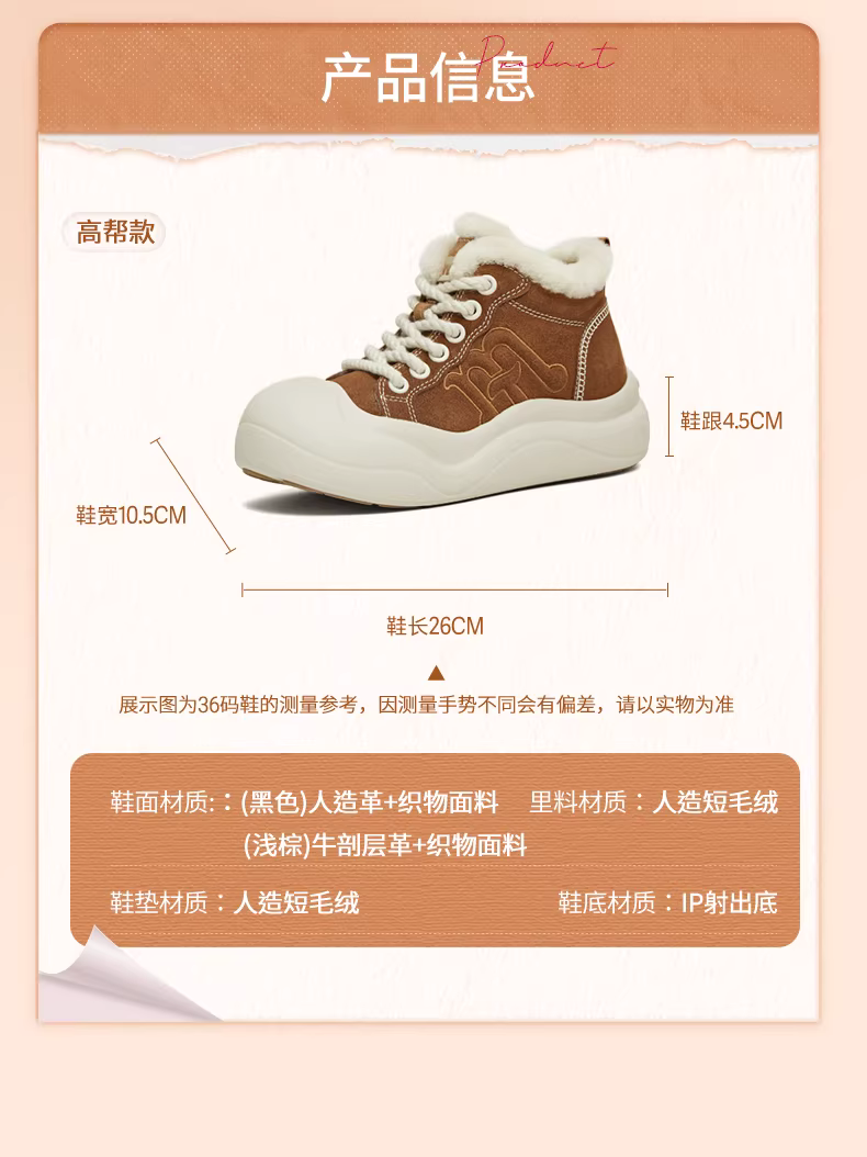 - Giày thể thao đế dày tăng chiều cao kiểu bánh bao gừng Tianmeiyi, giày lông mềm nữ, mẫu mới mùa đông 2025