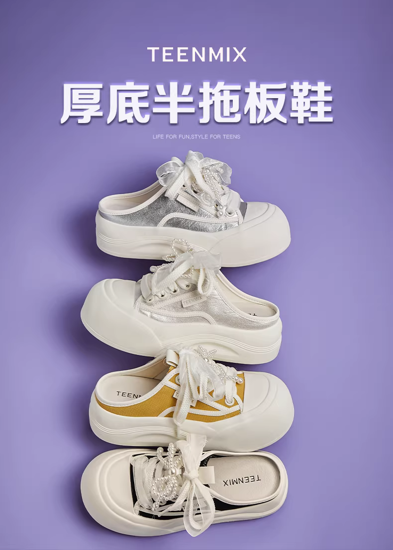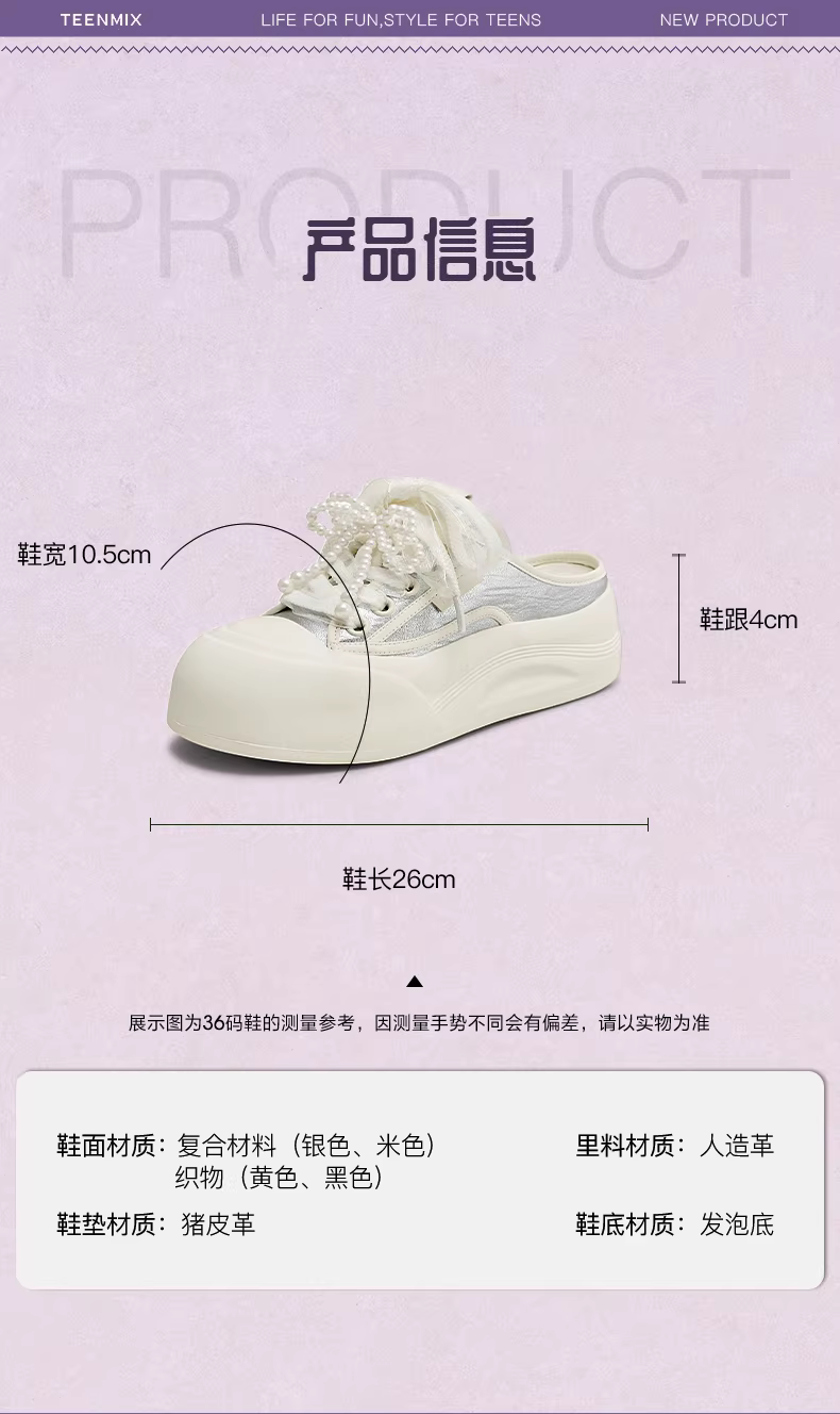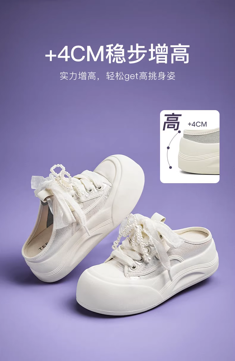 Giày thể thao đế dày tăng chiều cao Tianmeiyi, kiểu nửa dép kín mũi, màu trắng, giày nữ, dép sandal mới, phong cách thường ngày KB075BH5