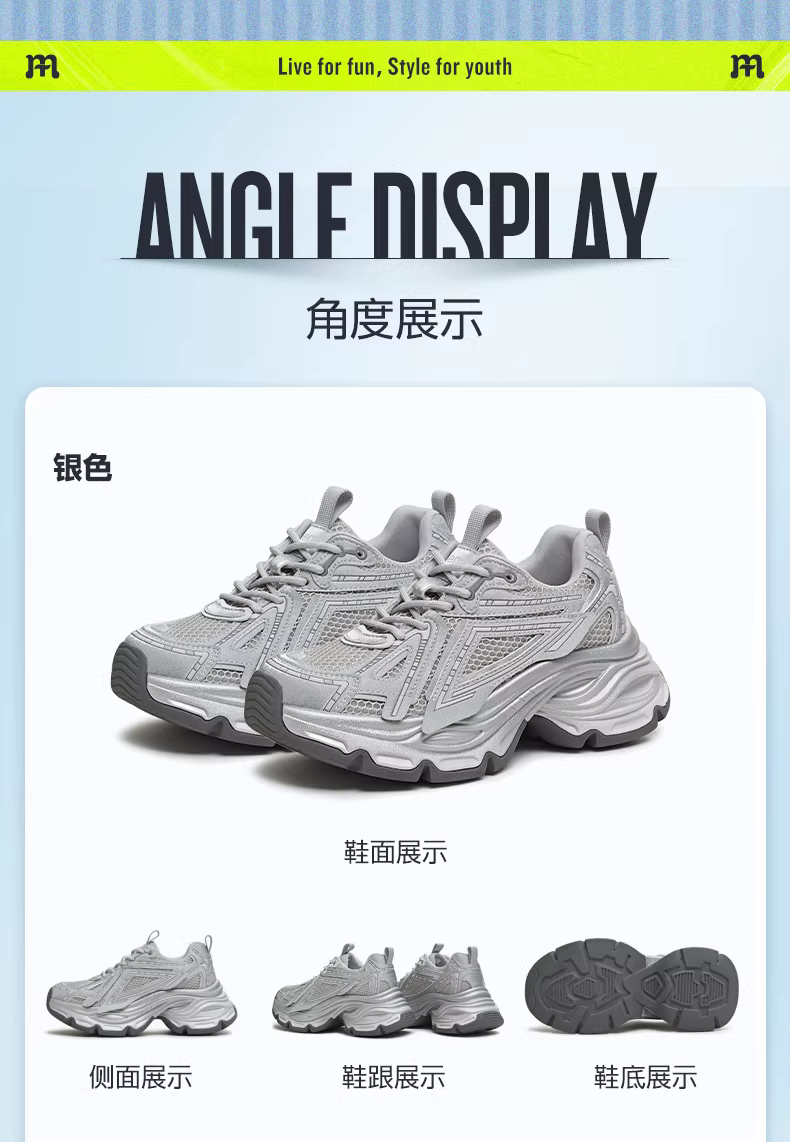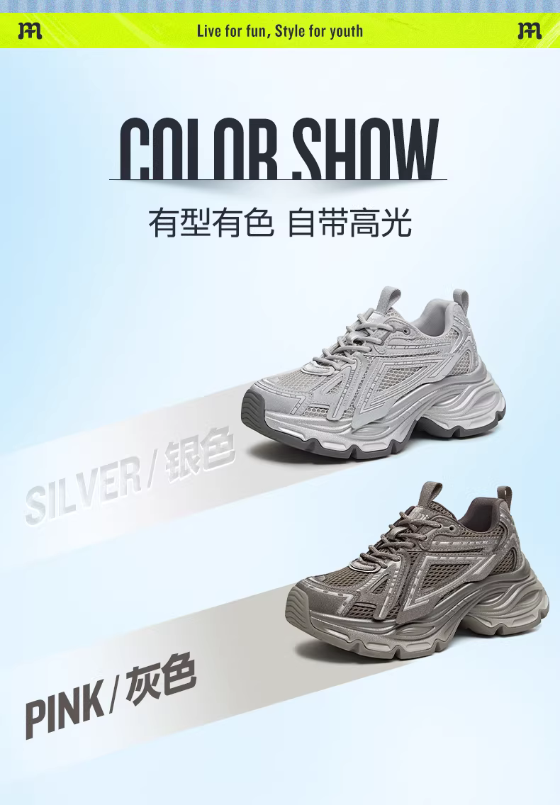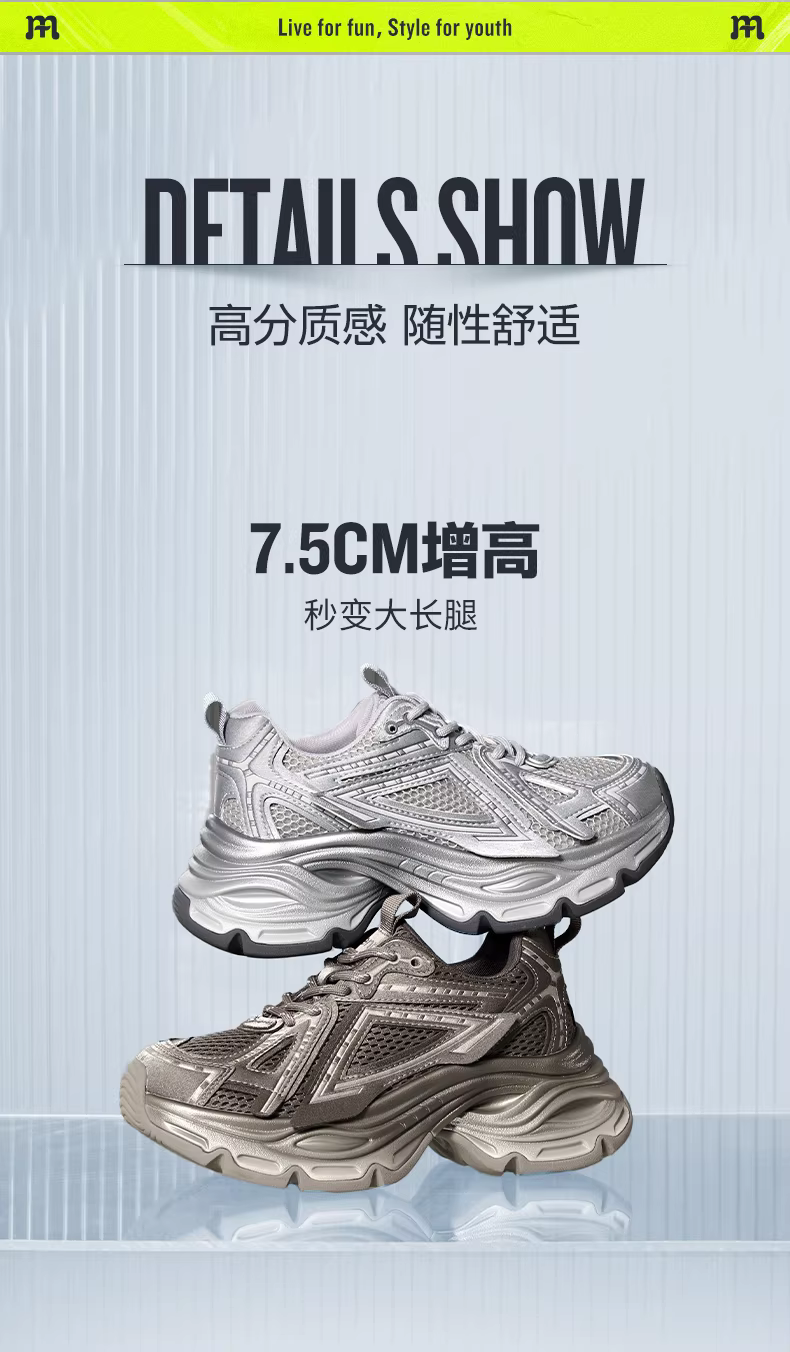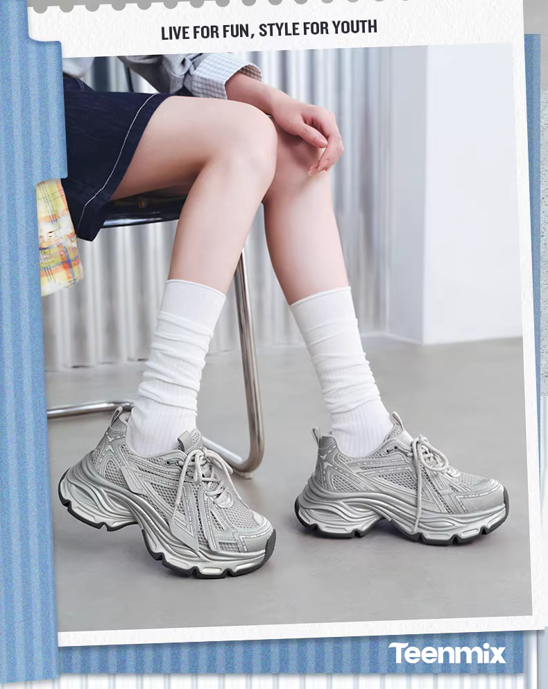 - Giày thể thao đế dày tăng chiều cao Tianmeiyi màu bạc dành cho nữ giày thường ngày phong cách retro mùa xuân 2026 mẫu mới BM521AM6