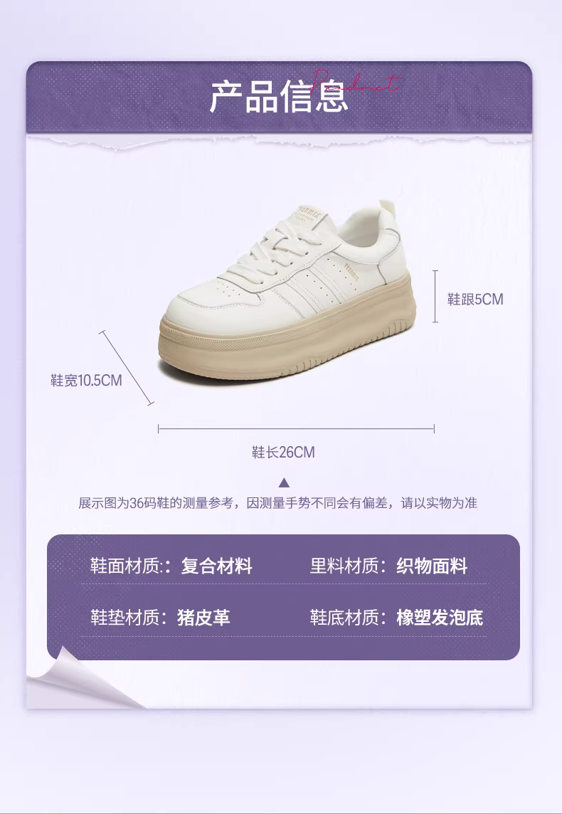 - Giày thể thao đế dày tăng chiều cao Tianmeiyi màu trắng, giày thể thao thường ngày dành cho nữ, mẫu mới thu 2025 KB084CM5