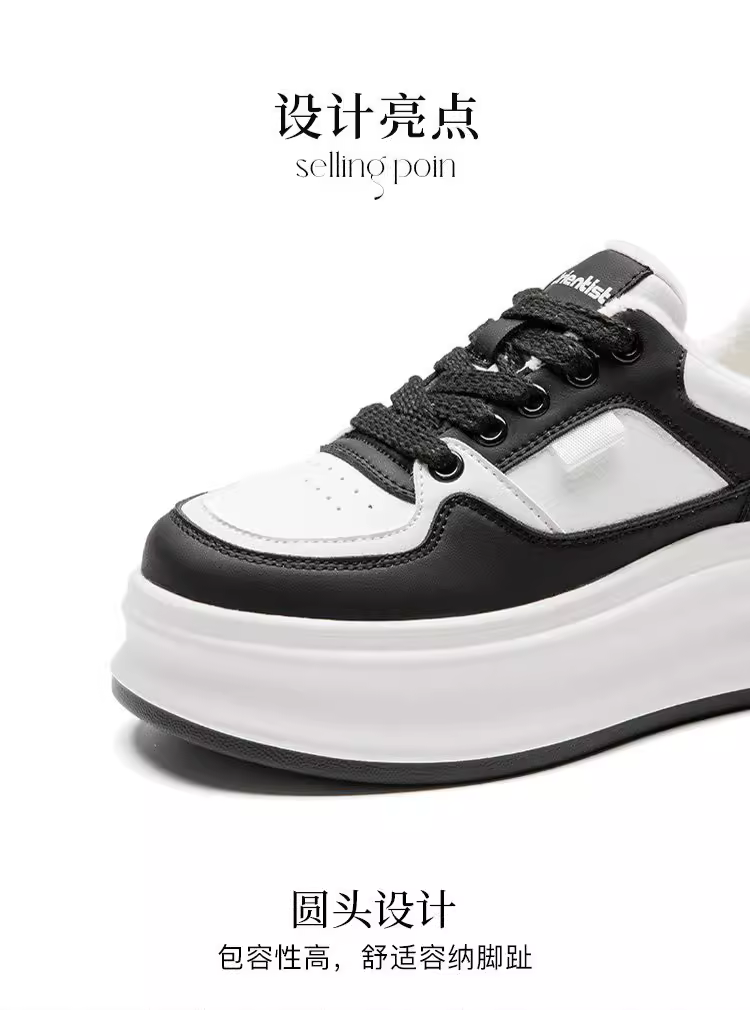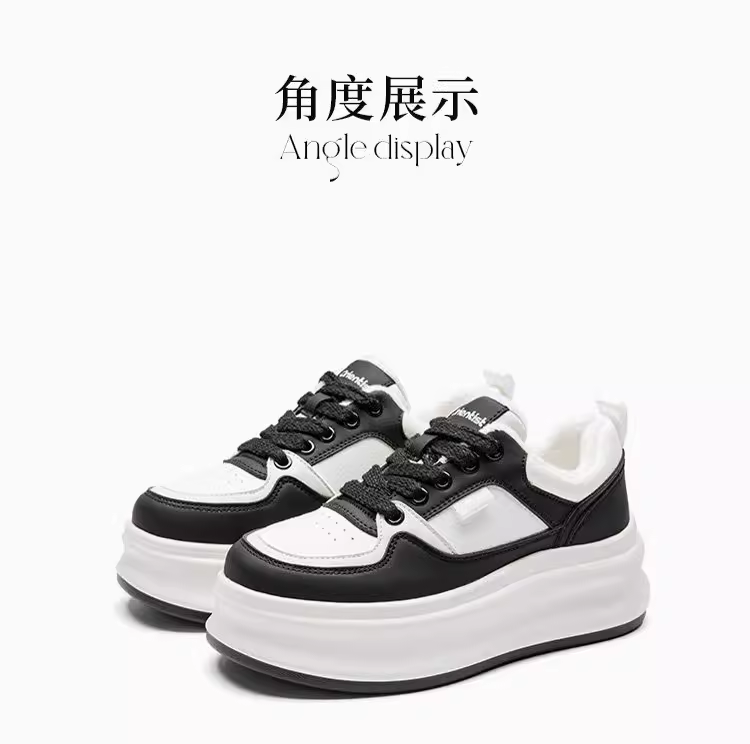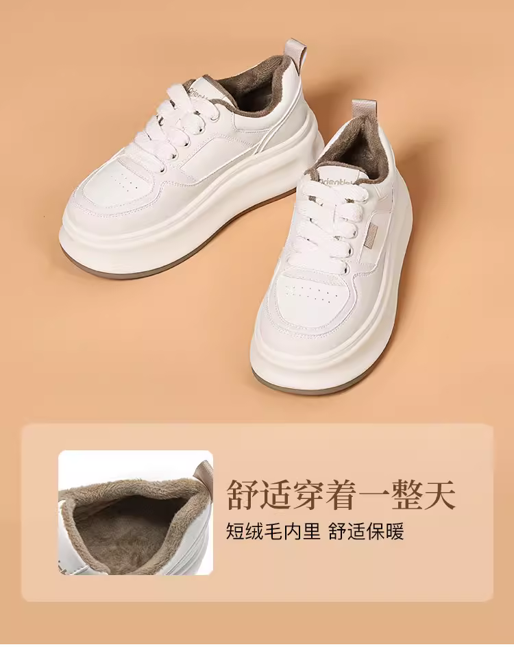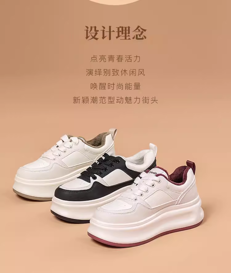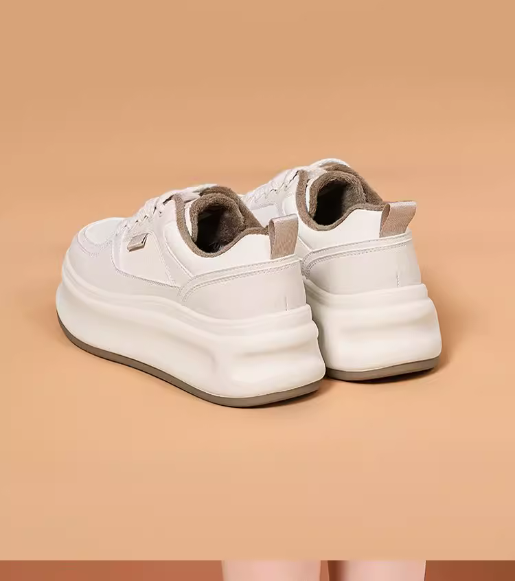 Giày thể thao đế xuồng nữ 2025, mẫu mới thu đông, giày thời trang đa năng, tăng chiều cao, màu trắng