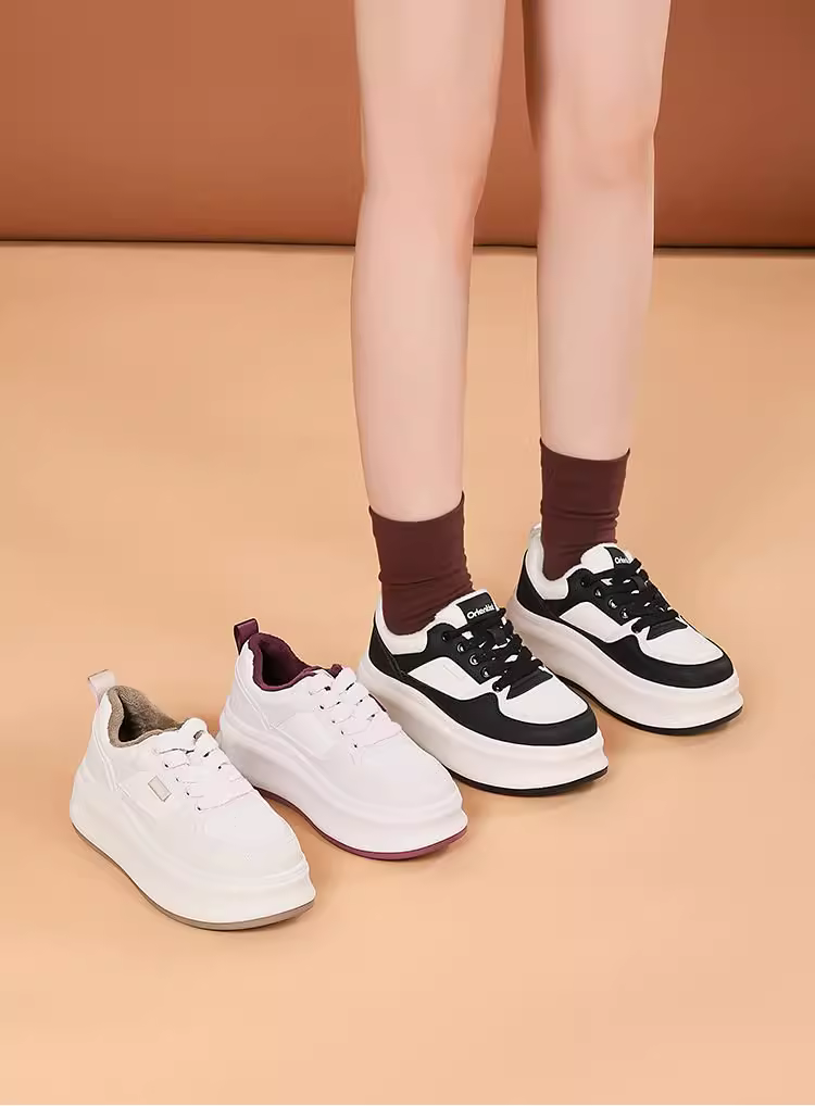 - Giày thể thao đế xuồng nữ 2025, mẫu mới thu đông, giày thời trang đa năng, tăng chiều cao, màu trắng
