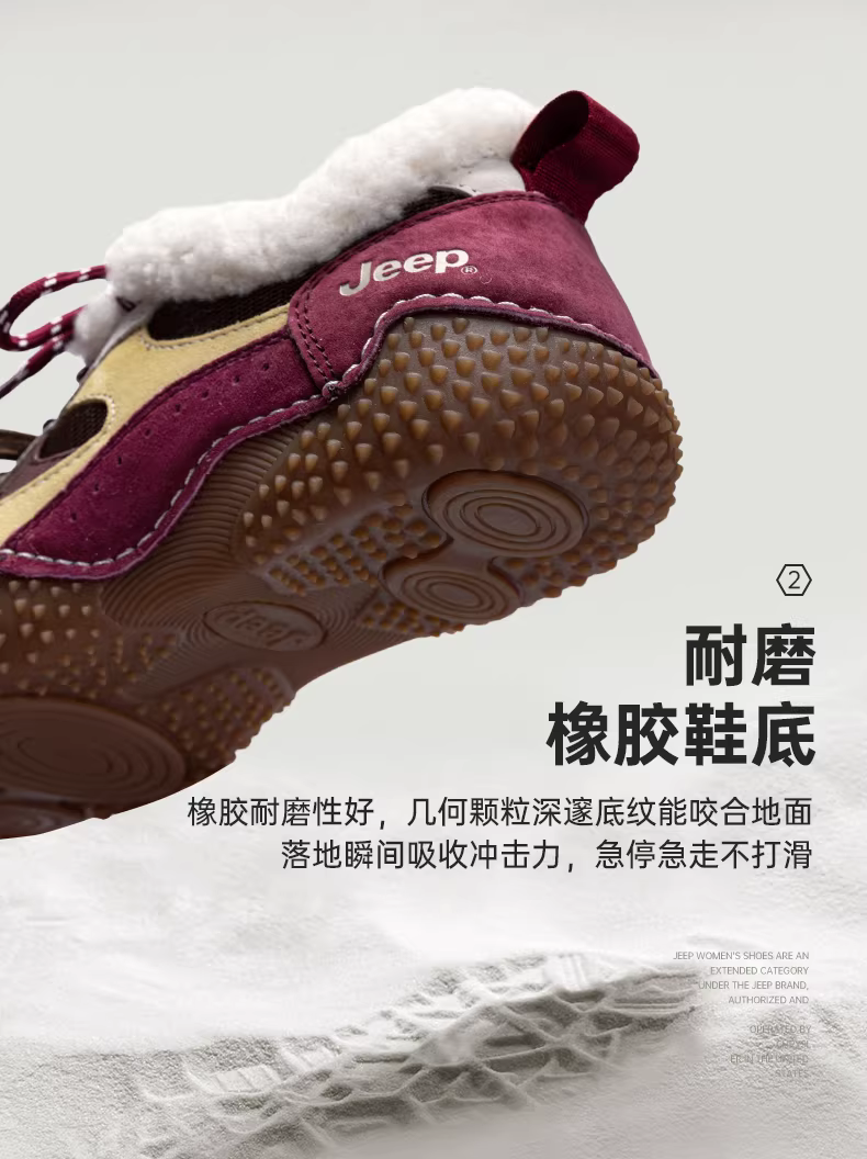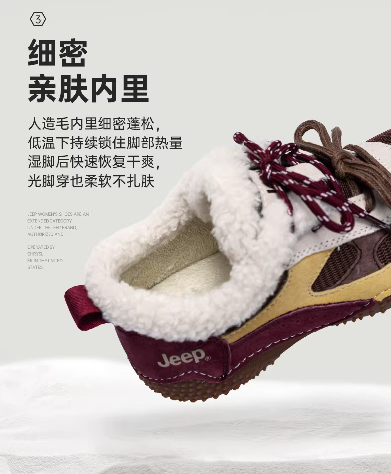 - Giày thể thao đi bộ Jeep dành cho nữ mùa thu đông 2025, kiểu mới, nhẹ, đế mềm, màu đỏ cổ điển, lót lông cừu, giày tập luyện