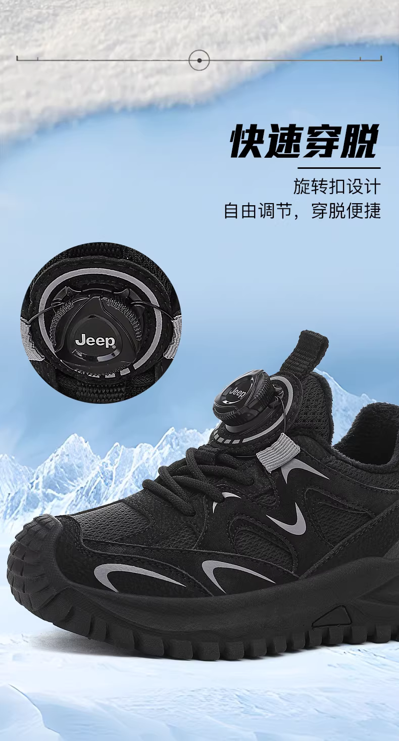 - Giày thể thao lót lông mùa đông của Jeep dành cho trẻ lớn hơn, giày cotton hai lớp, chống trơn trượt, chống mài mòn, giày đi bộ đường dài cho bé trai và bé gái, mẫu mới 2025.