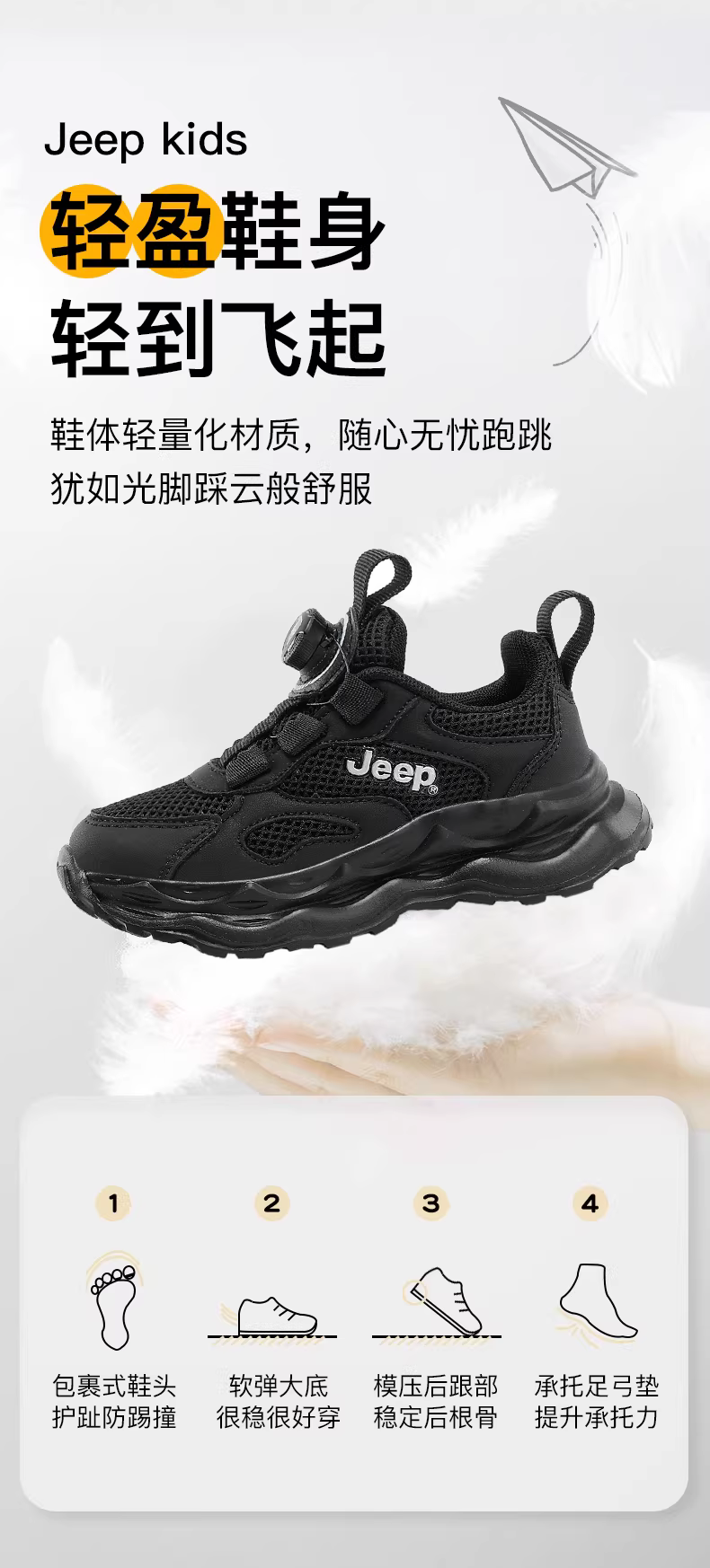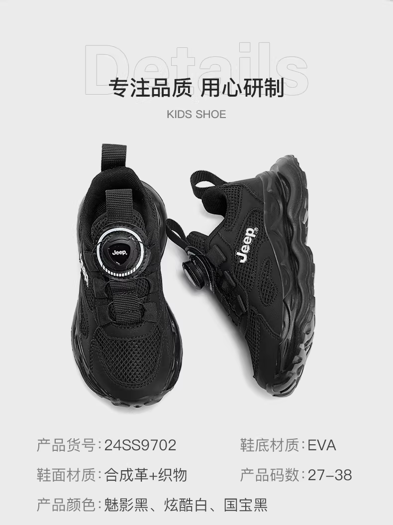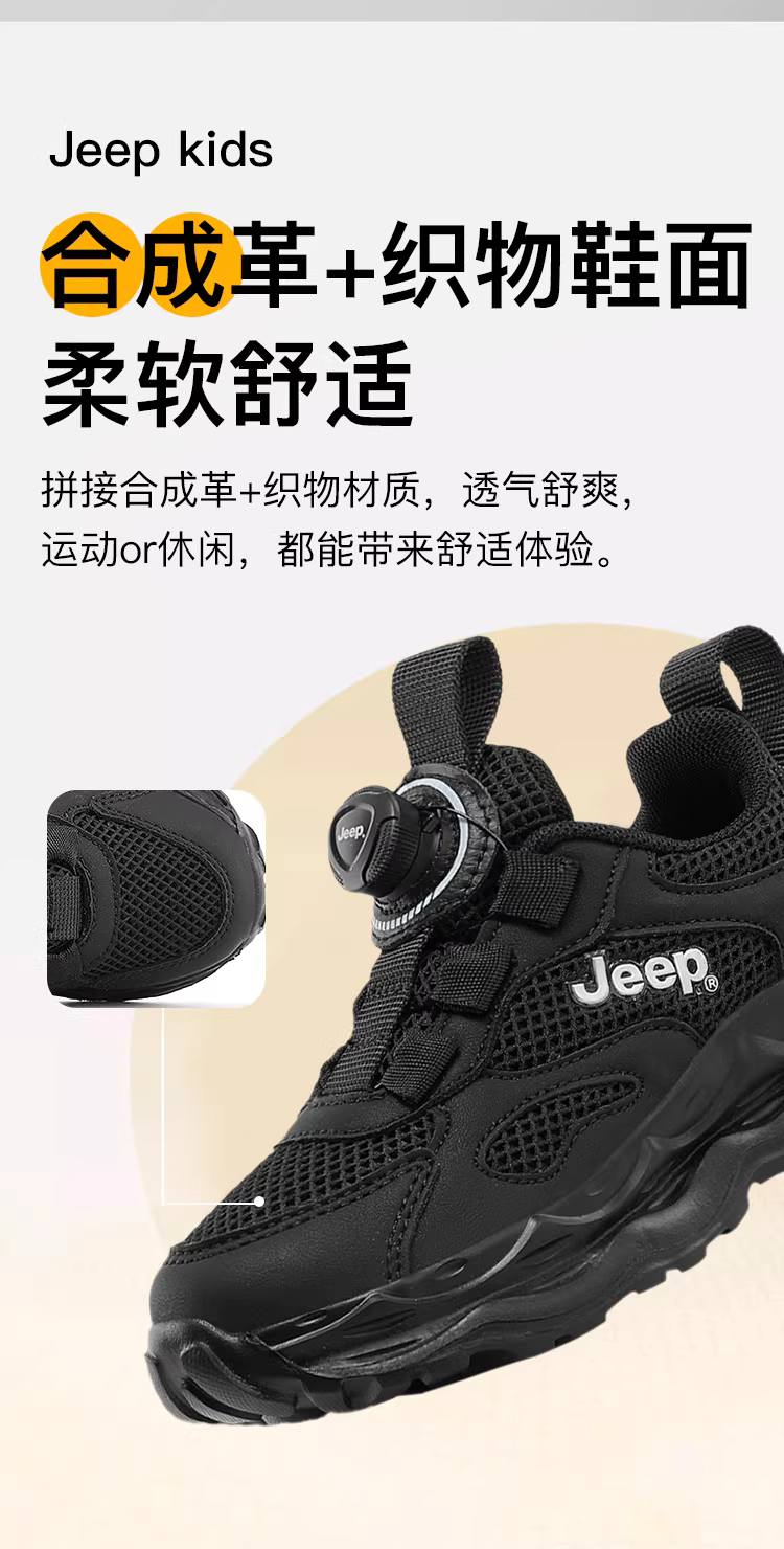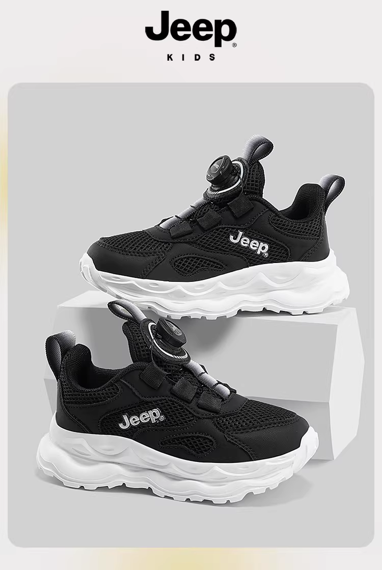 - Giày thể thao lưới trẻ em Jeep 2025 mùa thu mới màu đen giày nam đế mềm giày chạy bộ giày trẻ em cho bé trai