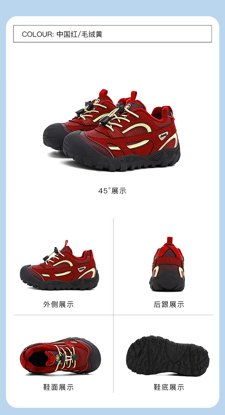 - Giày thể thao mùa đông trẻ em Jeep 2025 kiểu mới bé trai và bé gái lót lông cừu giữ ấm giày cotton màu đỏ giày Tết chống trơn trượt