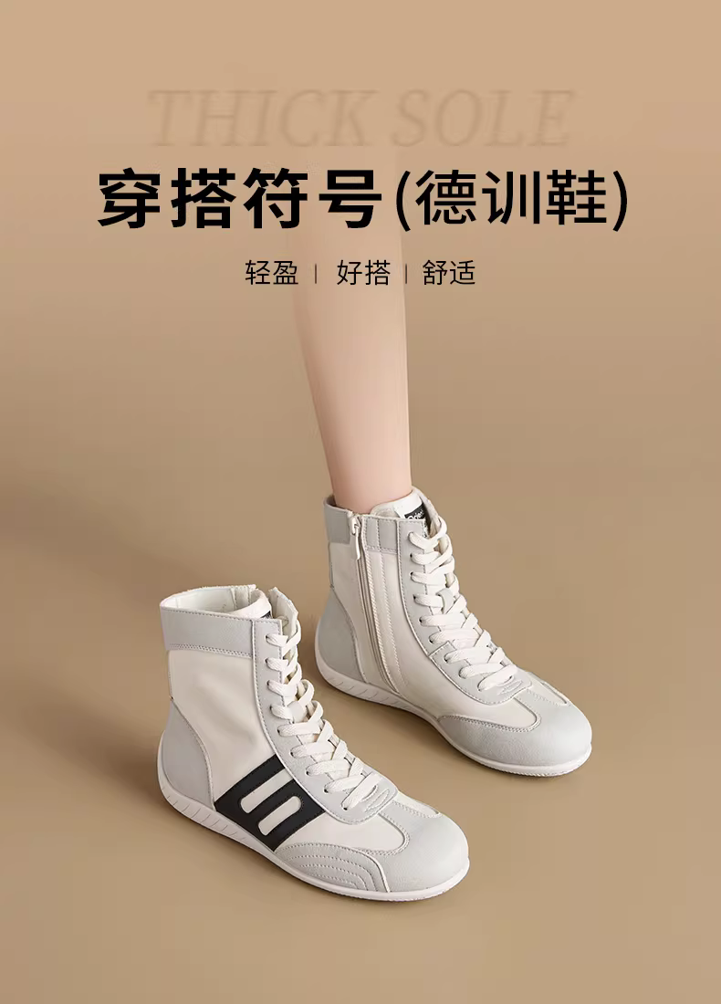 - Giày thể thao ngắn Dadong dành cho nữ, mẫu mới thu đông 2025, đế mềm, kiểu giày boxing mũi tròn, cổ cao, giày tập luyện Đức, kiểu boots đến giữa bắp chân