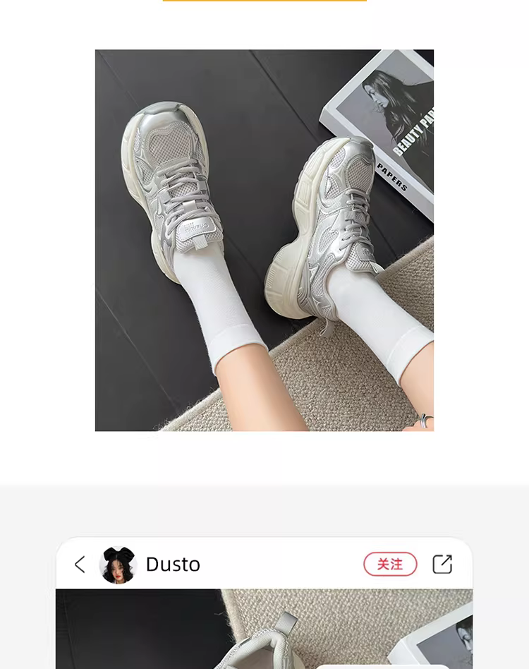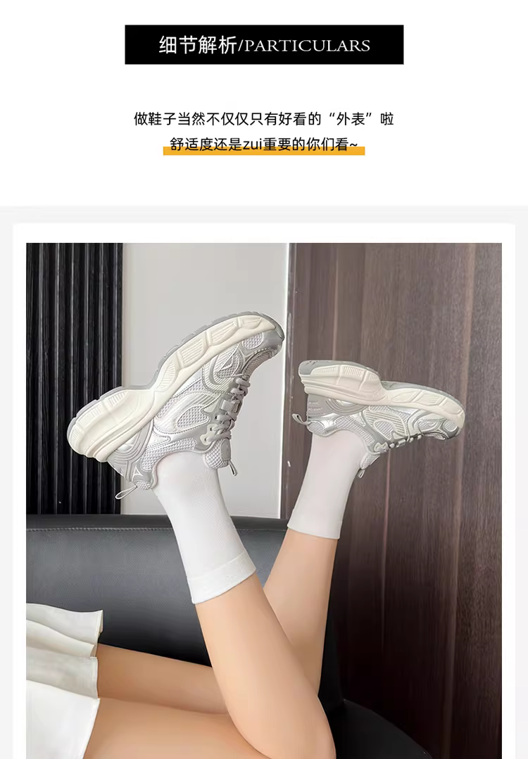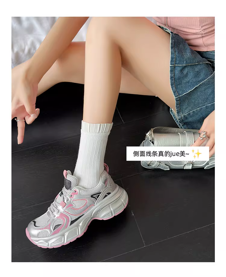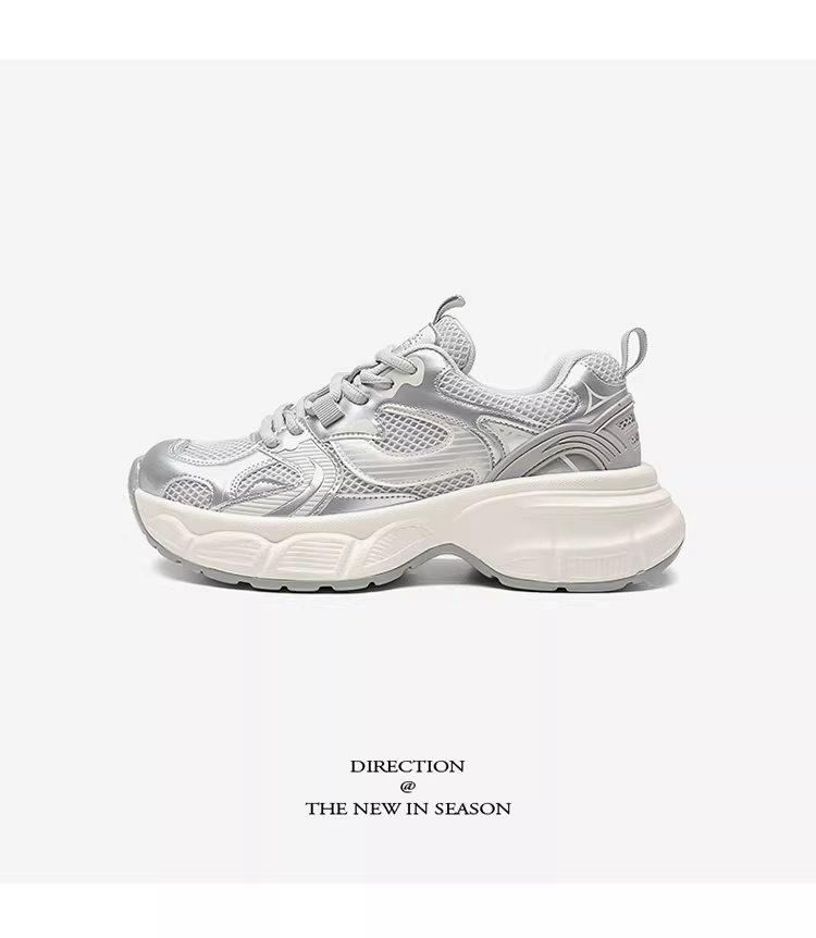 - Giày thể thao nữ màu bạc, mẫu mới thu đông 2025, đế dày, tăng chiều cao, giày thể thao thông thường giúp thon gọn dáng người.