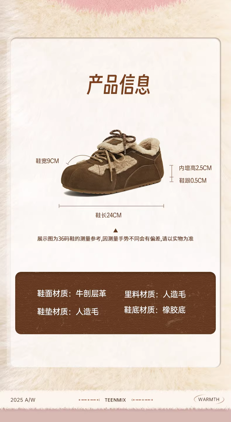 - Giày thể thao nữ Tianmeiyi đế dày lót lông phong cách retro, giày tập luyện Đức, giày thể thao thường ngày, mẫu mới mùa đông 2025 BL951DM5
