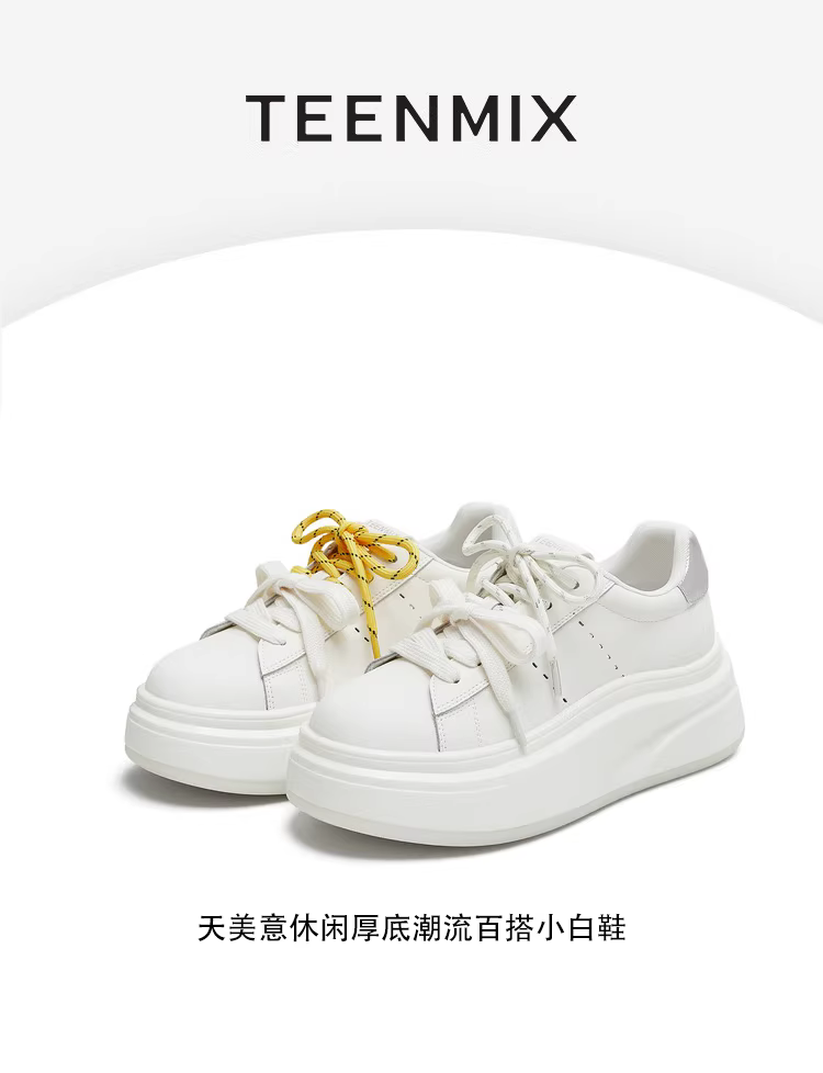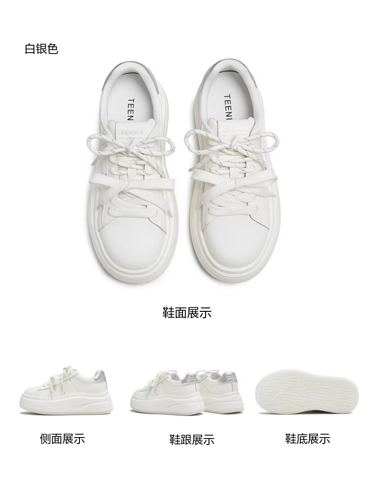 Giày thể thao nữ Tianmeiyi đế dày tăng chiều cao, dây giày đôi, màu trắng, kiểu dáng thể thao, mùa thu 2025, mẫu mới KB089CM5