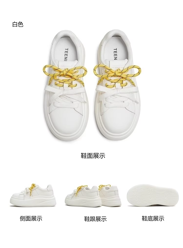 - Giày thể thao nữ Tianmeiyi đế dày tăng chiều cao, dây giày đôi, màu trắng, kiểu dáng thể thao, mùa thu 2025, mẫu mới KB089CM5