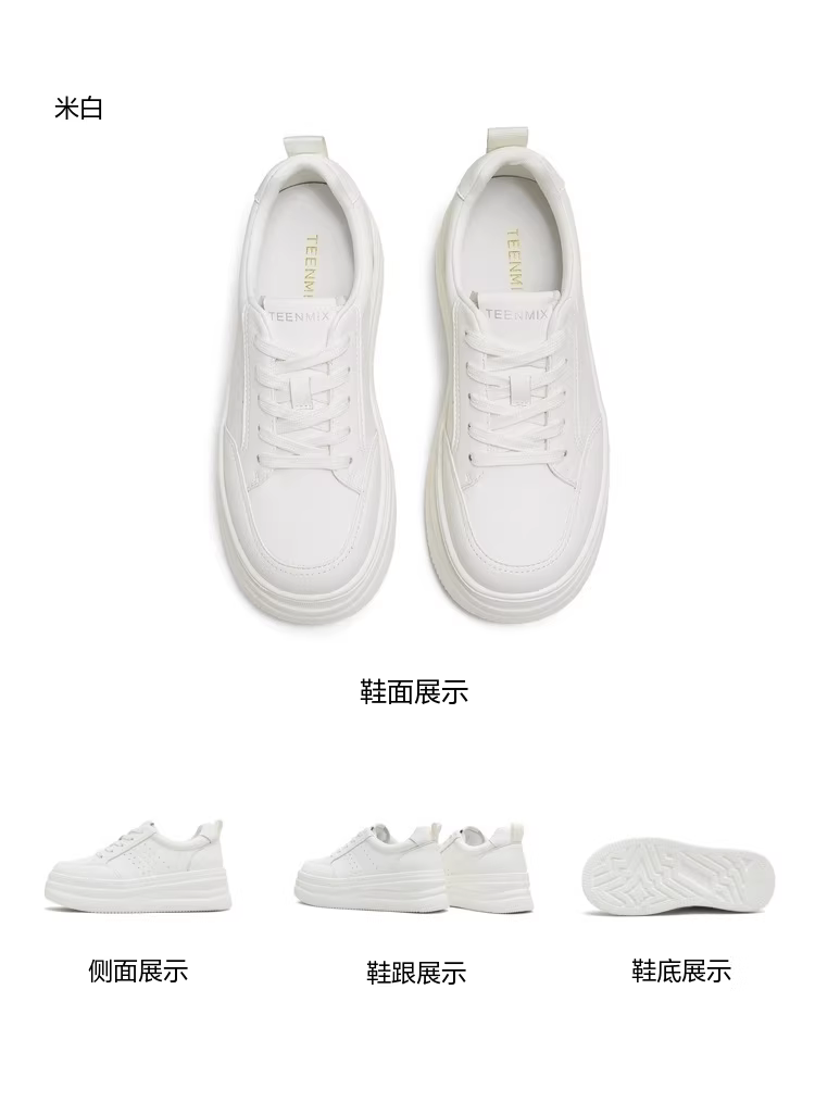 Giày thể thao nữ Tianmeiyi đế dày tăng chiều cao màu trắng, kiểu dáng đa năng, mẫu mới thu 2025, mã BL392CM5