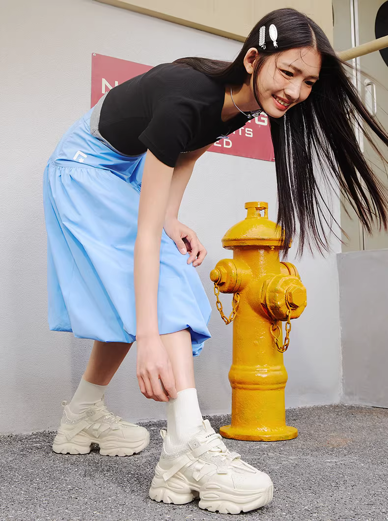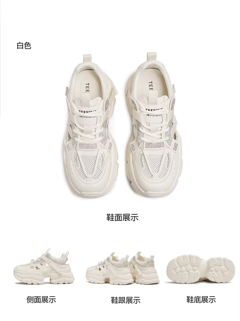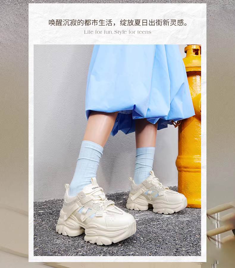 - Giày thể thao nữ Tianmeiyi đế dày thoáng khí tăng chiều cao kiểu bố màu bạc, giày lười mùa hè kiểu mới