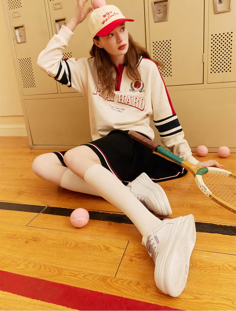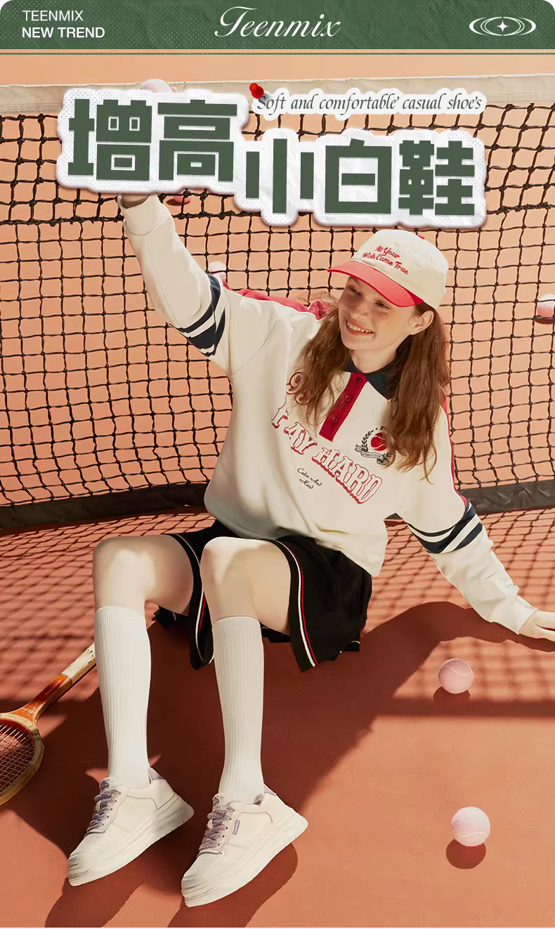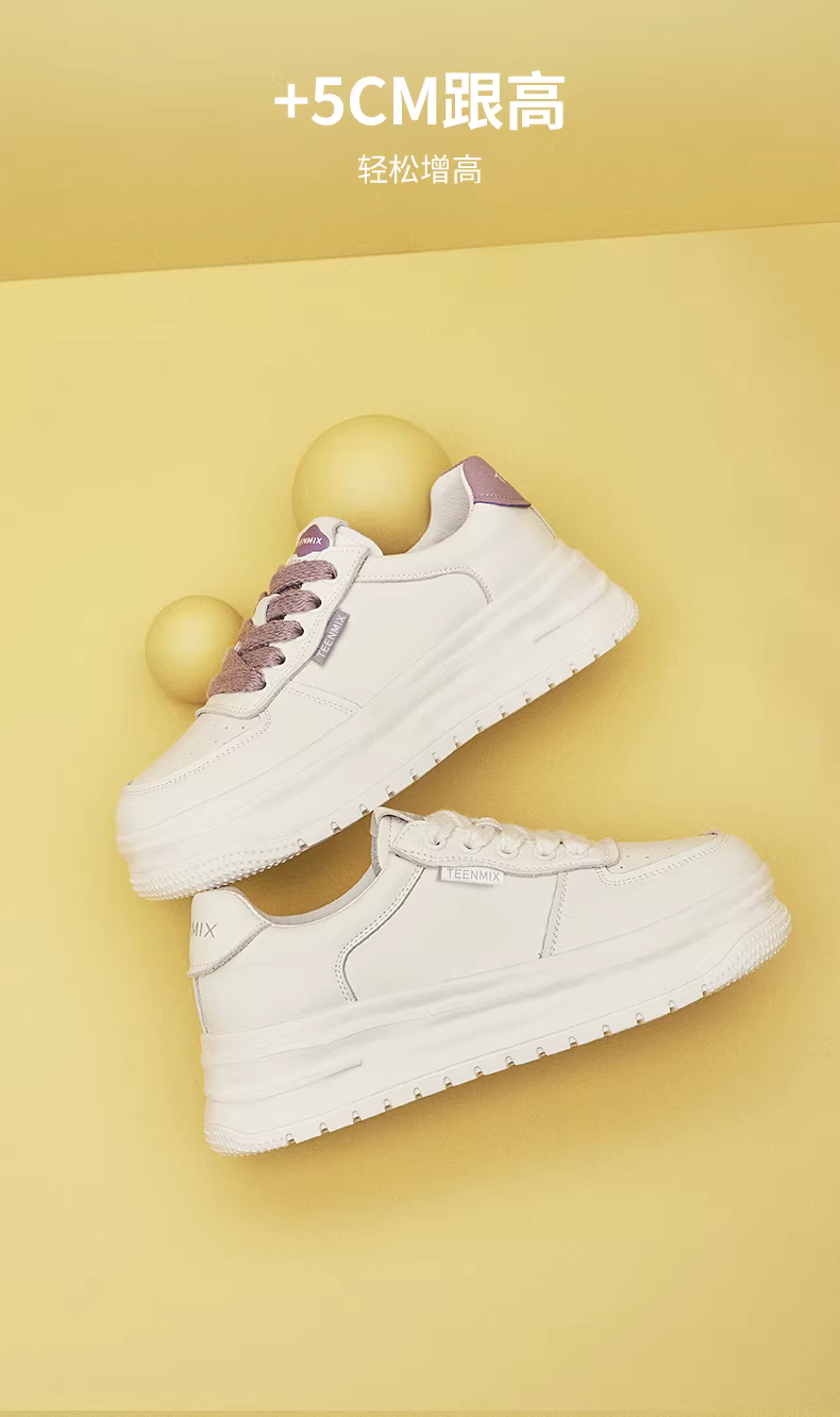 - Giày thể thao nữ Tianmeiyi đế dày thoáng khí tăng chiều cao màu trắng, kiểu dáng thường ngày, mẫu mới thu 2025 KD095CM5