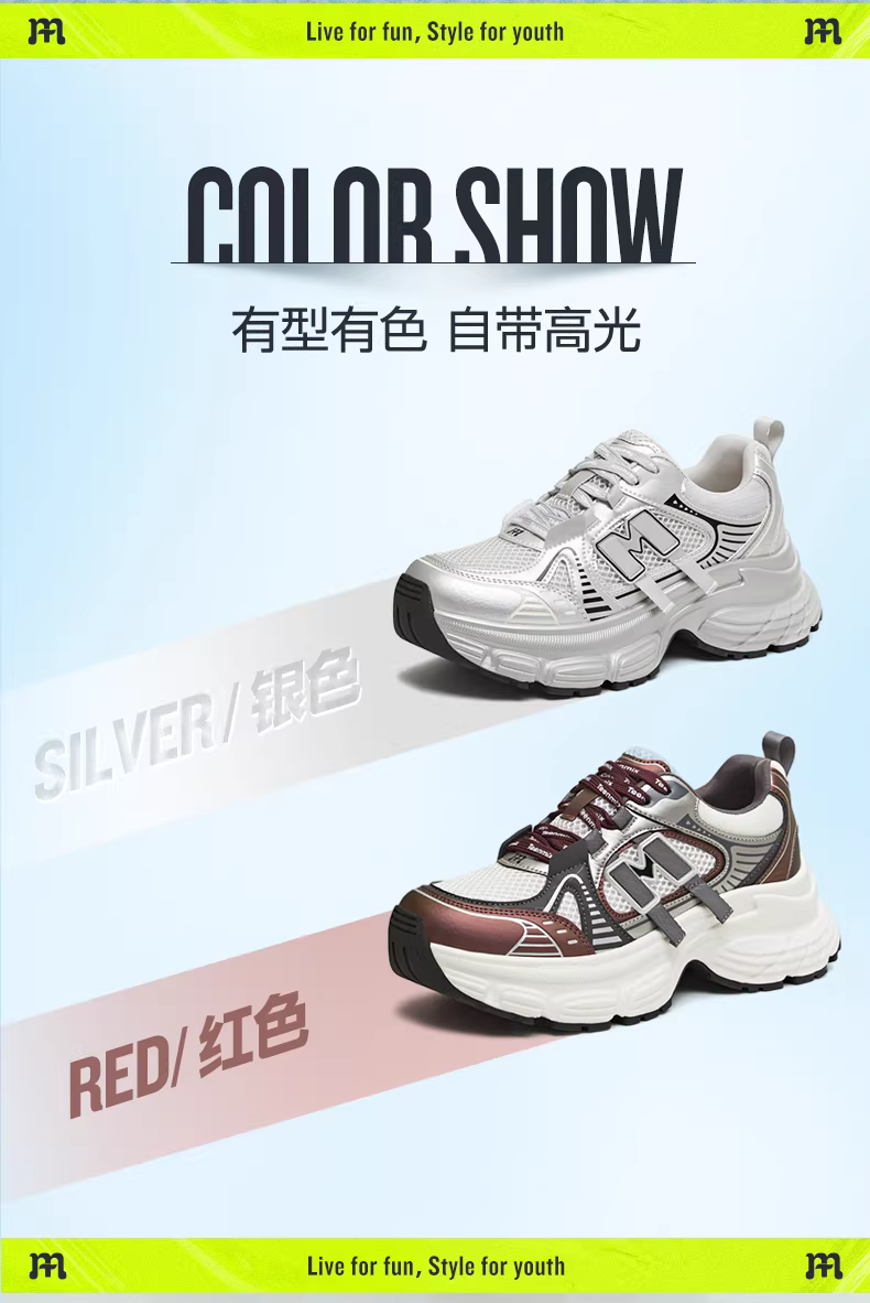 - Giày thể thao nữ Tianmeiyi đế dày thời trang màu bạc kiểu retro, giày casual mùa xuân 2026 mẫu mới BK964AM6